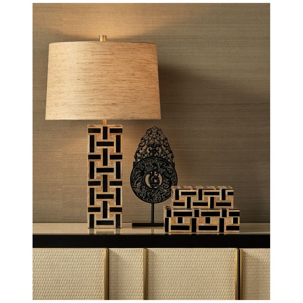 Obsessed! This lamp is the perfect mix of earthy and elegant. The geometric pattern is super eye-catching, and the natural tones go with everything. It arrived perfectly packaged and the quality is even better in person. It has a great weight to it and looks absolutely gorgeous on my console table. If you’re looking for a luxe upgrade for your home, this is it!