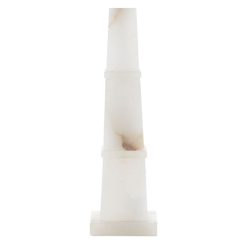 - Materials: White alabaster stone lamp body. Polished nickel finish hardware. Note that the natural stone may vary slightly in color and pattern.