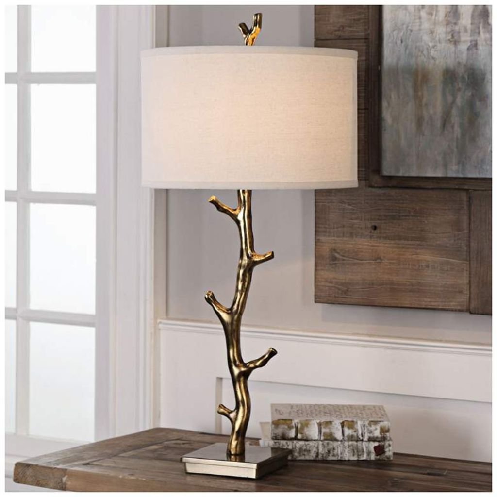 ANTIQUED GOLD TREE BRANCH METAL TABLE LAMP
