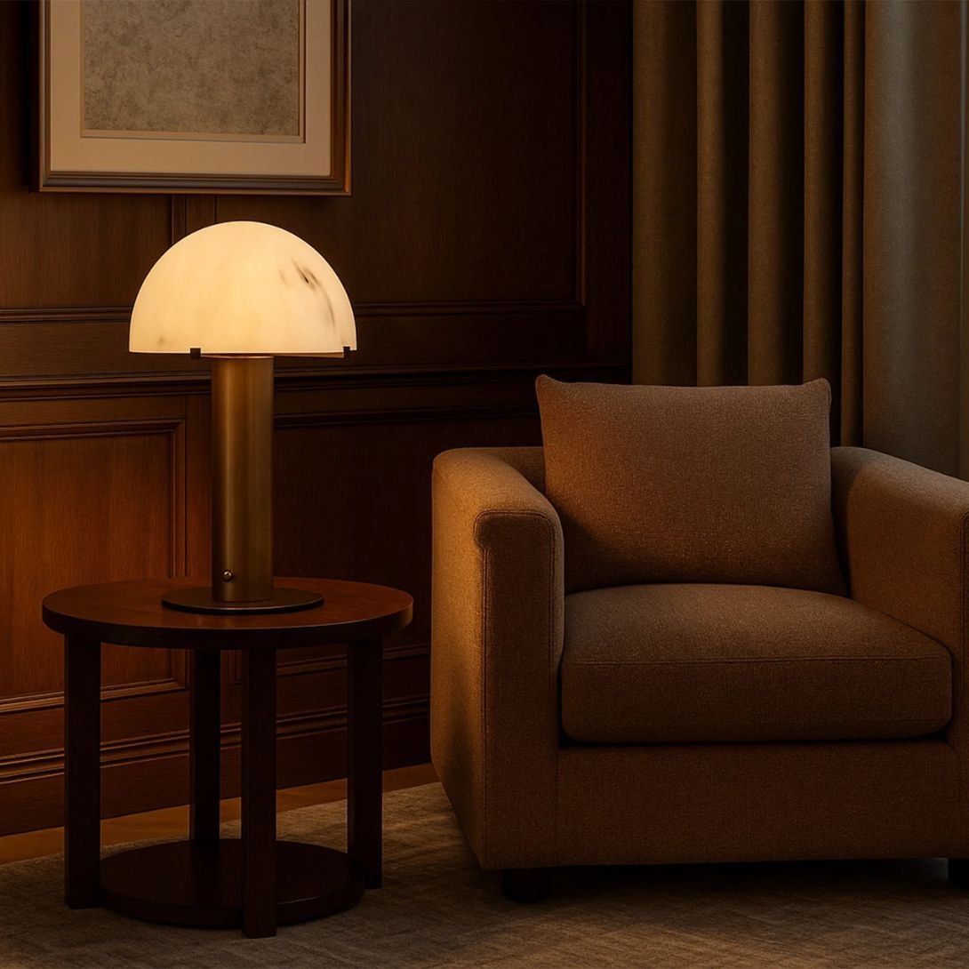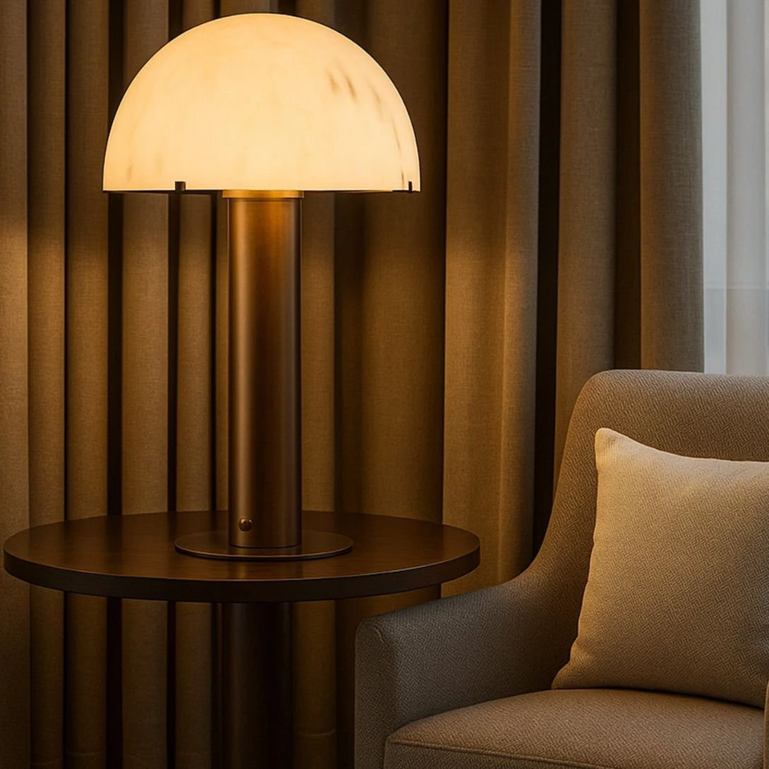 The alabaster-effect dome diffuses light gently, casting a warm and inviting glow. This makes the Aston ideal for creating a cozy yet elevated atmosphere in living rooms, bedrooms, or stylish offices.