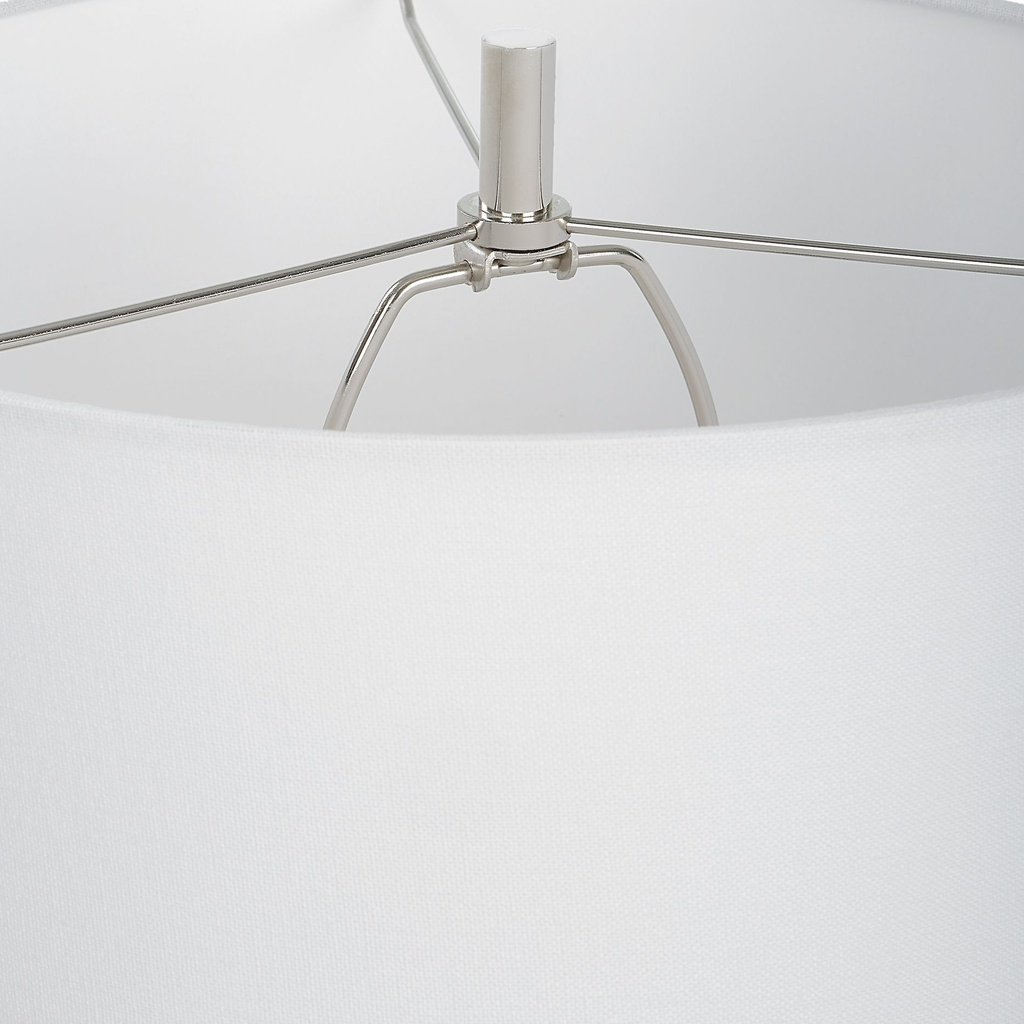 The drum shade distributes light evenly across the room, creating a warm, ambient glow. Its straight sides and clean profile suit both modern and transitional spaces. The fabric softens the light source without significantly dimming output.