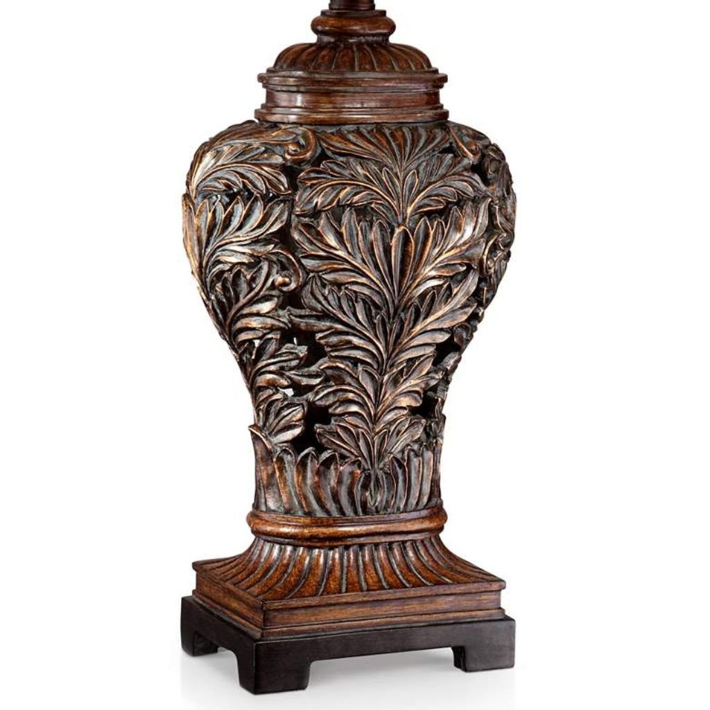 • Bronze lamp finishes highlight the carved leaf detailing