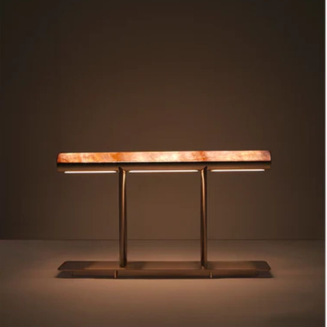 A handcrafted marble diffuser softens the integrated LED’s glow, creating a welcoming ambiance, while the opaline insert ensures effective and even task lighting for desktops or workspaces. This seamless combination of warmth and clarity makes Beatrice equally suited for both statement lighting and everyday utility.