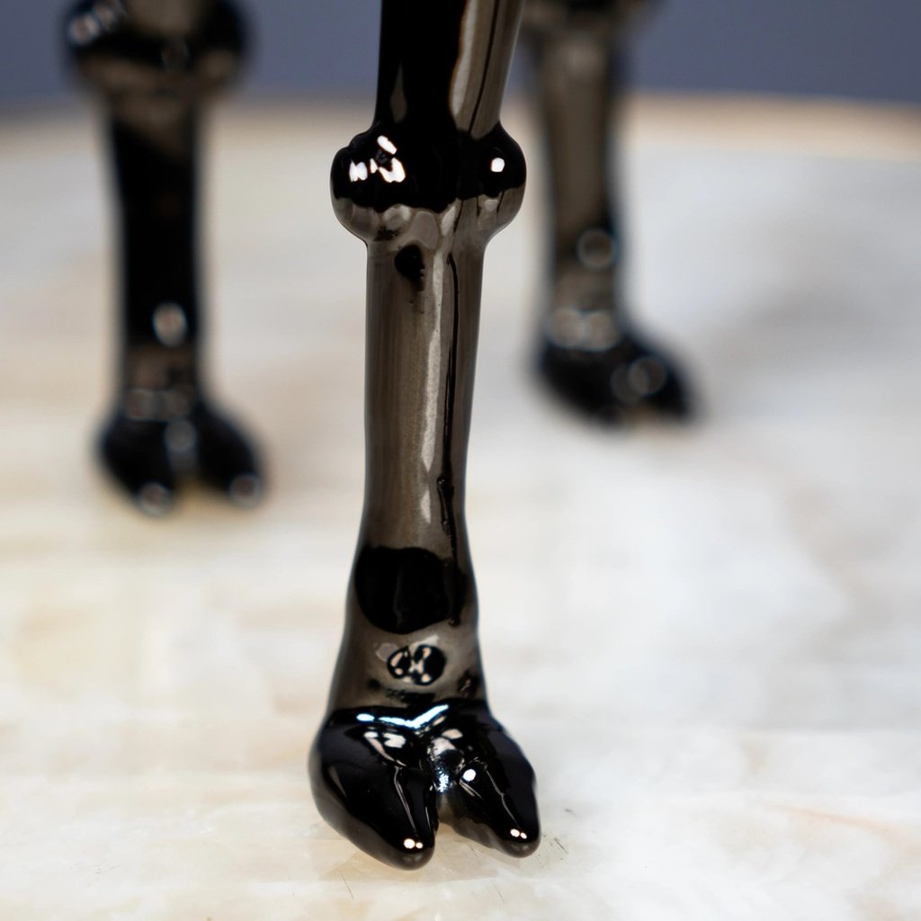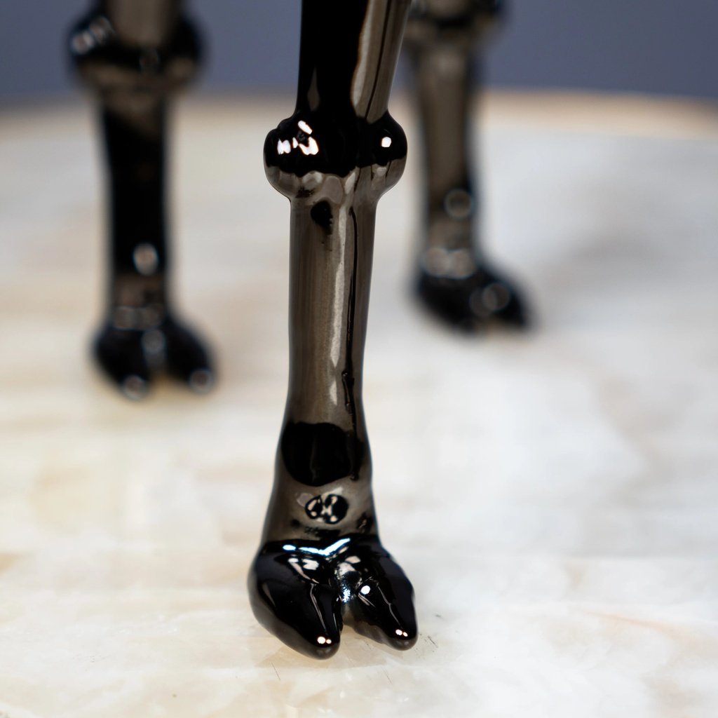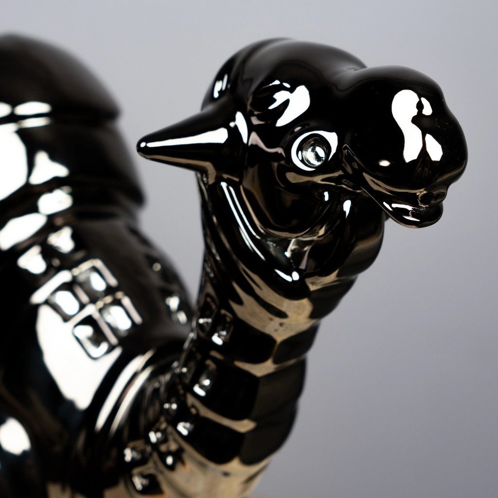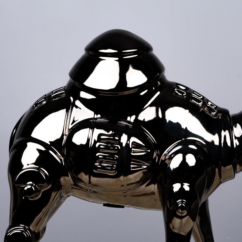Among the most celebrated famous sculptures of animals in contemporary interior design, the camel form carries cultural weight and visual drama in equal measure. This reinterpretation pushes that tradition forward with a futuristic finish that complements minimalist, industrial, and luxury interiors alike. It pairs beautifully alongside home decor accents, grounding its sleek black form with natural warmth — or commands its own spotlight on a dark sculpture for sale, pedestal or glass shelf.