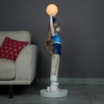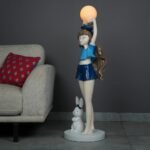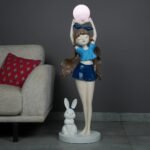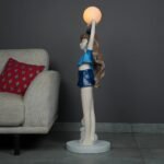 This lamp is more than just a source of light; it’s a piece of art. With a young girl in a blue outfit and a charming bunny at her feet, the lamp brings a burst of character to your home. The tall structure and refined details make it a standout piece, sure to catch the eye of anyone who enters the room.