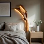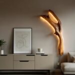 With its two-branch composition, this sconce beautifully mimics the natural growth of a tree limb. It features integrated lighting that sits snugly behind the wood, casting a soft, warm halo. Its vertical design draws the eyes upward, making it perfect for bedside placement or as a striking accent on any wall.