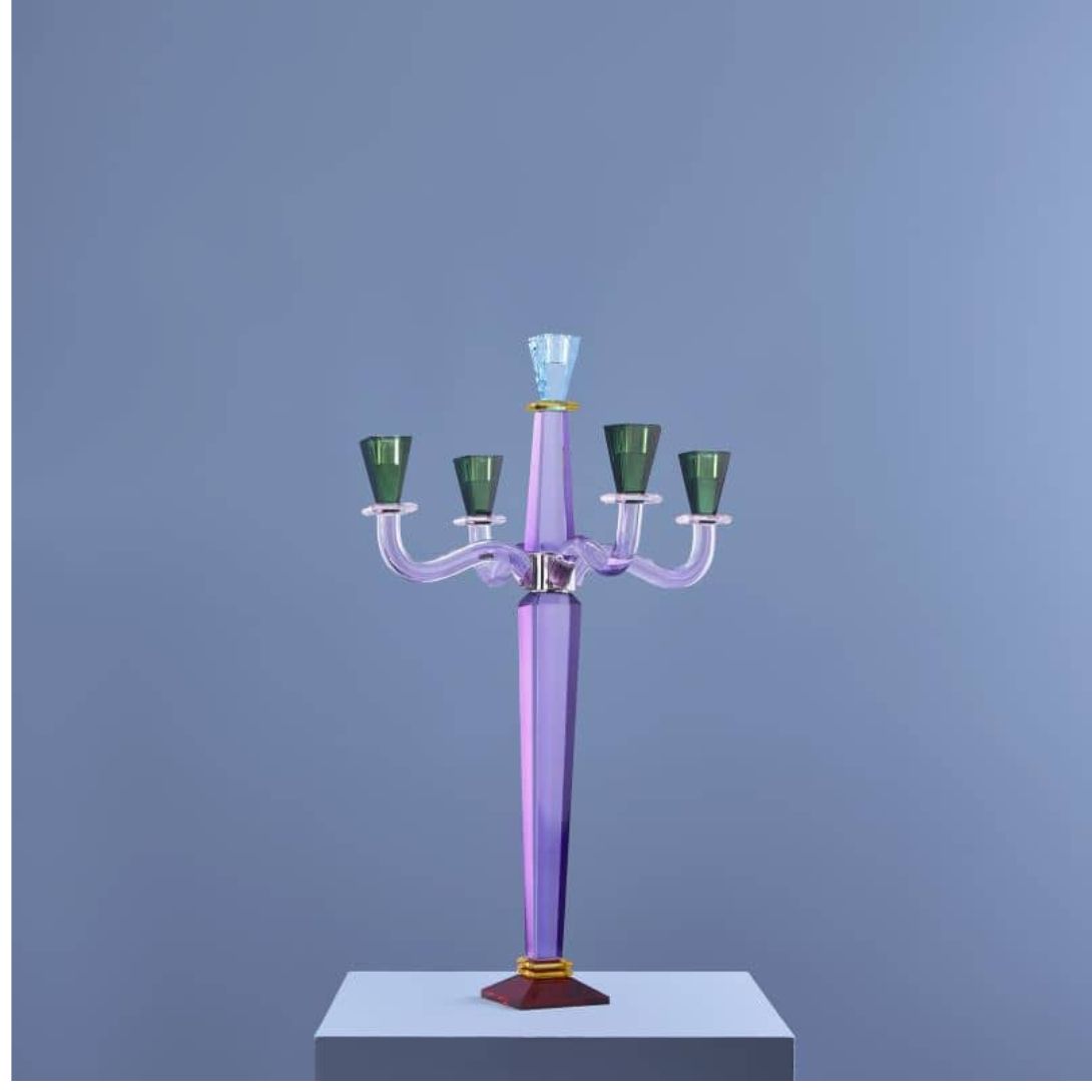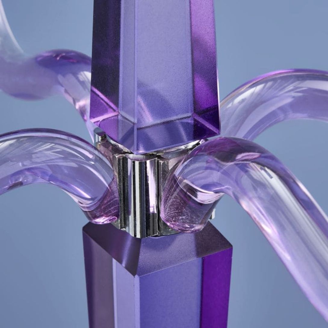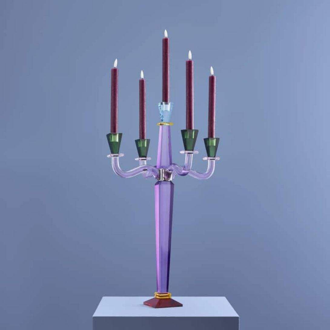CANDLE HOLDER FANCY CRYSTAL 5-FLAME GLASS PURPLE