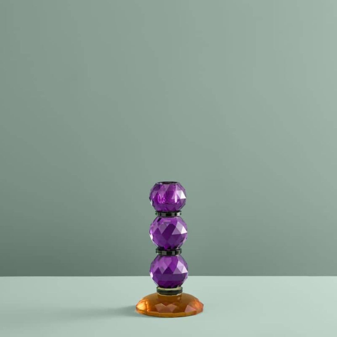 CANDLE HOLDER FANCY CRYSTAL MAGENTA ROUND GLASS