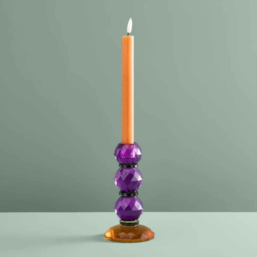 The Fancy Crystal Candle Holder brings a luxurious touch to your interior with its sleek, rounded design and vibrant magenta hue. Crafted from high-quality glass, this elegant piece doesn’t just hold a candle—it elevates the entire ambiance of your space. Whether used on its own or styled in a group, it creates a warm and refined glow that suits both everyday décor and special occasions.