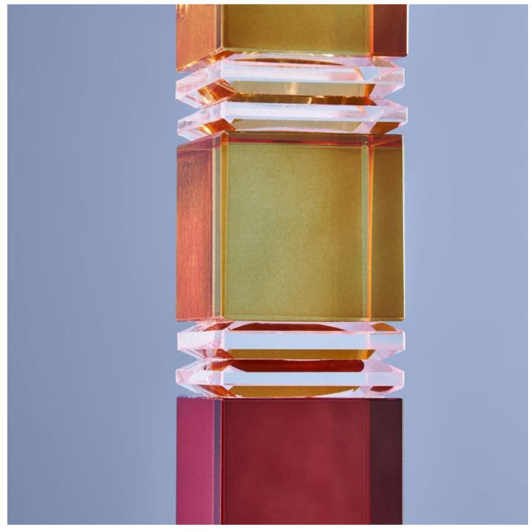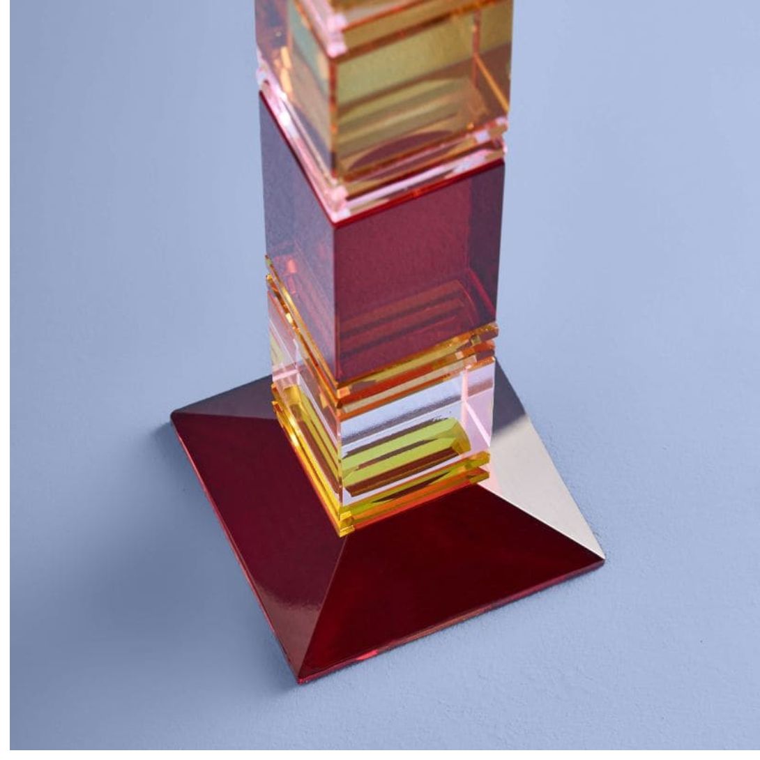 Crafted from high-quality glass, this candle holder features a unique multicolored design that beautifully reflects candlelight in a dazzling array of hues. Each angle reveals a different play of color, adding visual interest and charm to your space. The elegant, modern shape pairs beautifully with both minimalist and maximalist interiors.