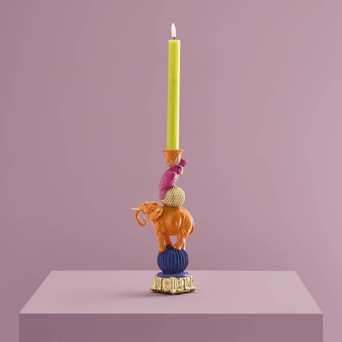 At the heart of this candelholder is a beautifully hand-painted elephant, proudly standing and holding a cockatoo perched gracefully on its back. Every element has been meticulously designed, from the delicate feathers of the bird to the expressive features of the elephant, creating a dynamic and visually engaging composition that doubles as a piece of art.