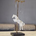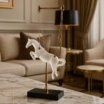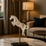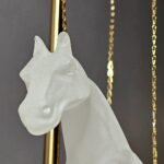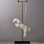 Suspended by four sleek metal chains, the horse seems to float effortlessly in the air. This clever design element adds depth and intrigue, making it a perfect conversation starter. It’s a piece that doesn’t just sit quietly; it commands attention.