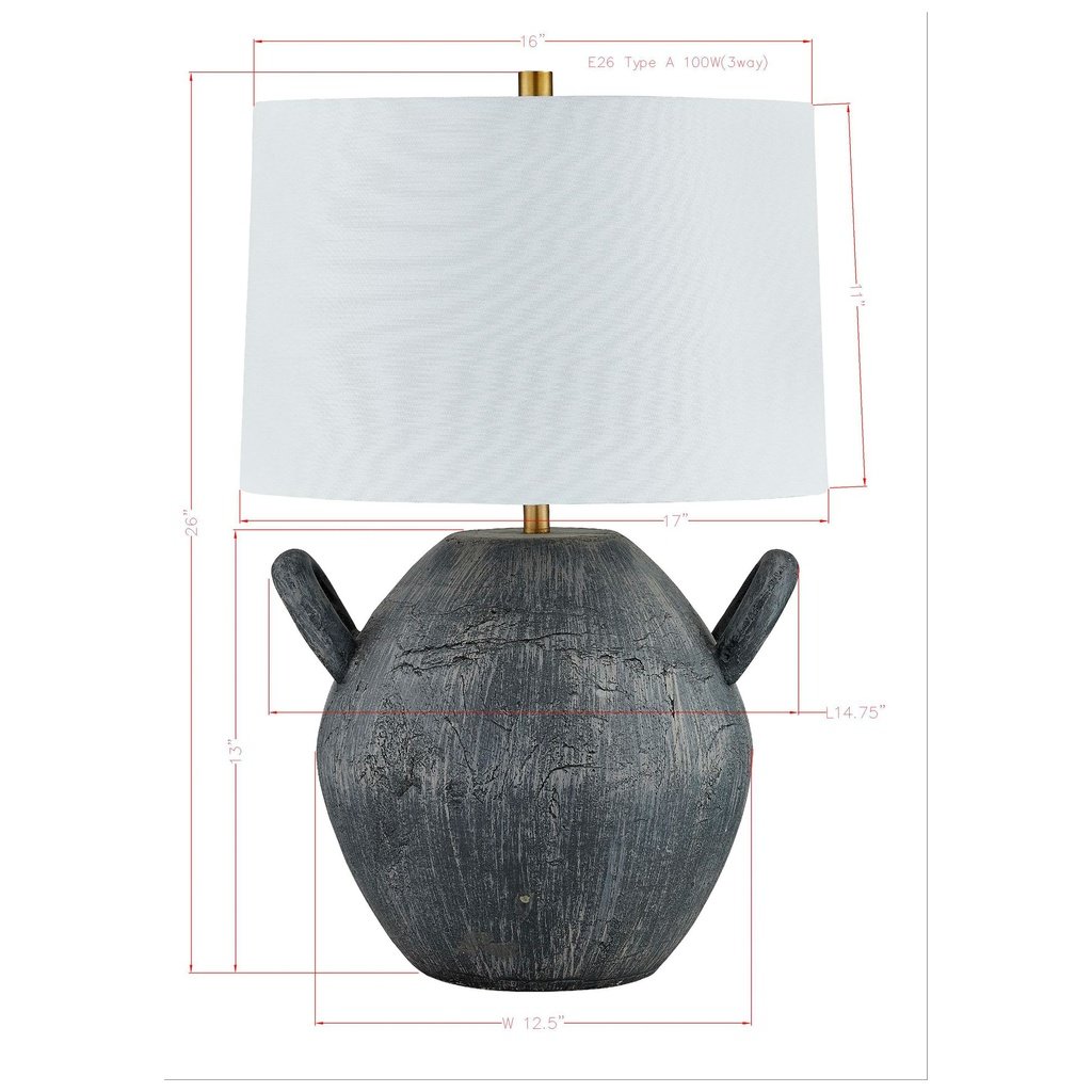 Built from a substantial 22-pound base, this jug table lamp has the kind of physical presence that anchors a room rather than simply decorating it. The classic jug silhouette in a deep charcoal black finish brings a grounded, sculptural quality that works across both contemporary and transitional interiors. The charcoal tone is rich without being stark — dark enough to make a statement, neutral enough to pair widely.