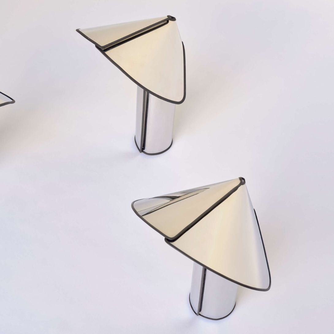 The lamp’s folded structure is securely closed with riveted metal hooks, giving it an industrial yet refined character. A vividly colored TPU seal runs along the entire edge, adding both a tactile detail and a visual contrast that accentuates the lamp’s clean silhouette.