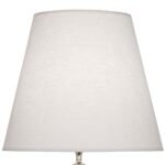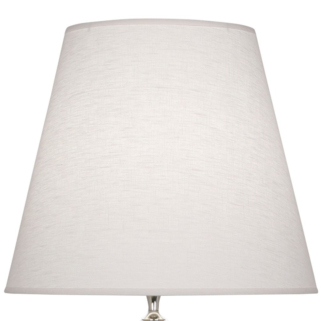 The tapered empire shade directs light downward in a focused, flattering way. It’s a classic profile that works with a wide range of base styles. The fabric choice complements the overall finish and color palette of the lamp.