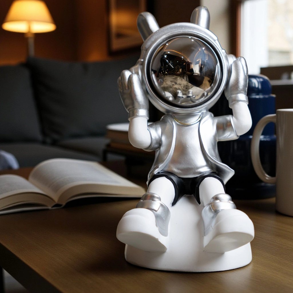 With its headphones in place, the Cosmic Listener captures the essence of calm and creativity. It’s more than just decor; it tells a story of exploration and relaxation. Its smooth contours and sturdy construction mean it’s not only beautiful but built to last, making it a wonderful piece to collect or gift.
