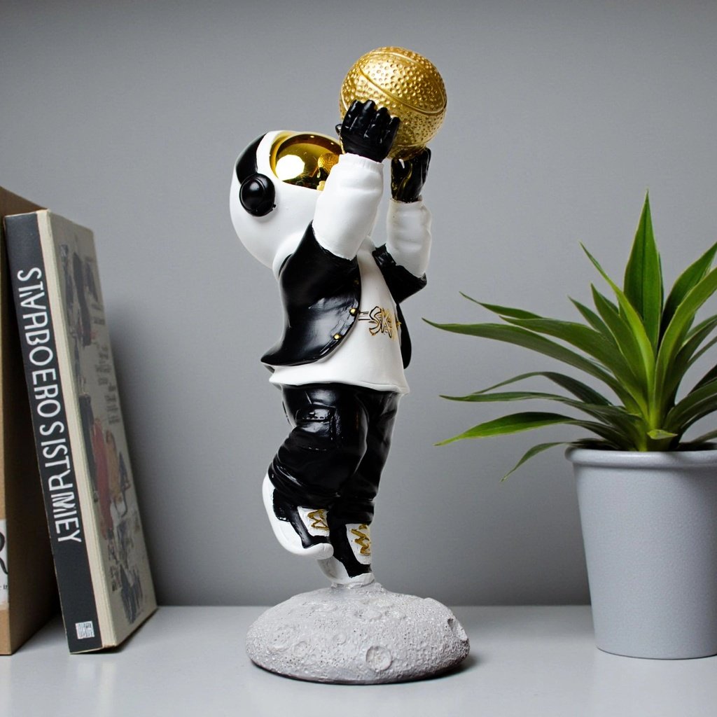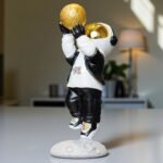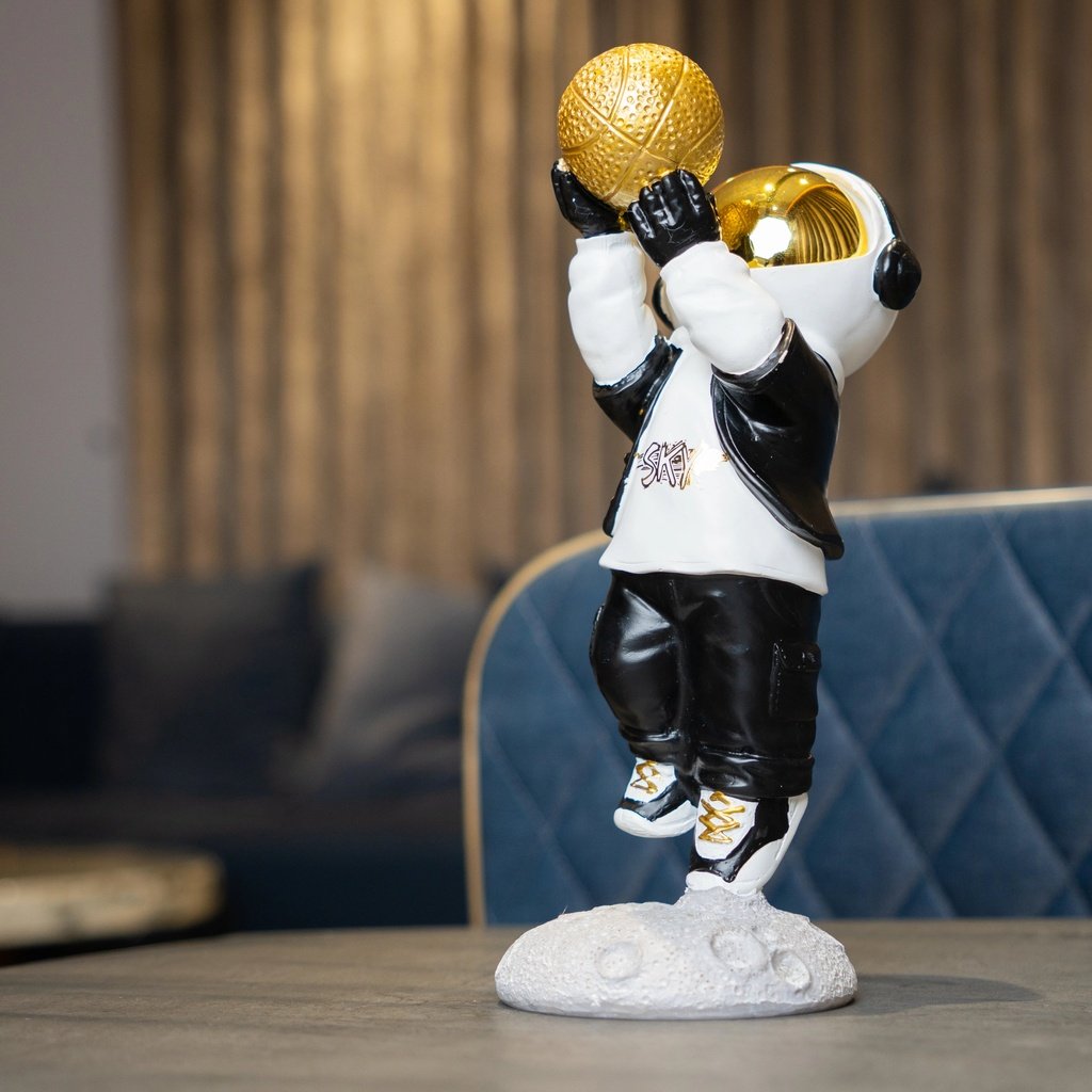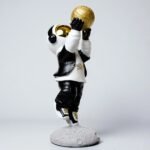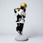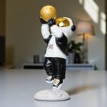 This figurine stands in an upward shooting pose, capturing a moment of ambition and playfulness. The gold basketball is especially striking, with its reflective finish that draws attention. It’s a piece that embodies movement and energy, making it ideal for those spots in your home where you want to spark a bit of life.
