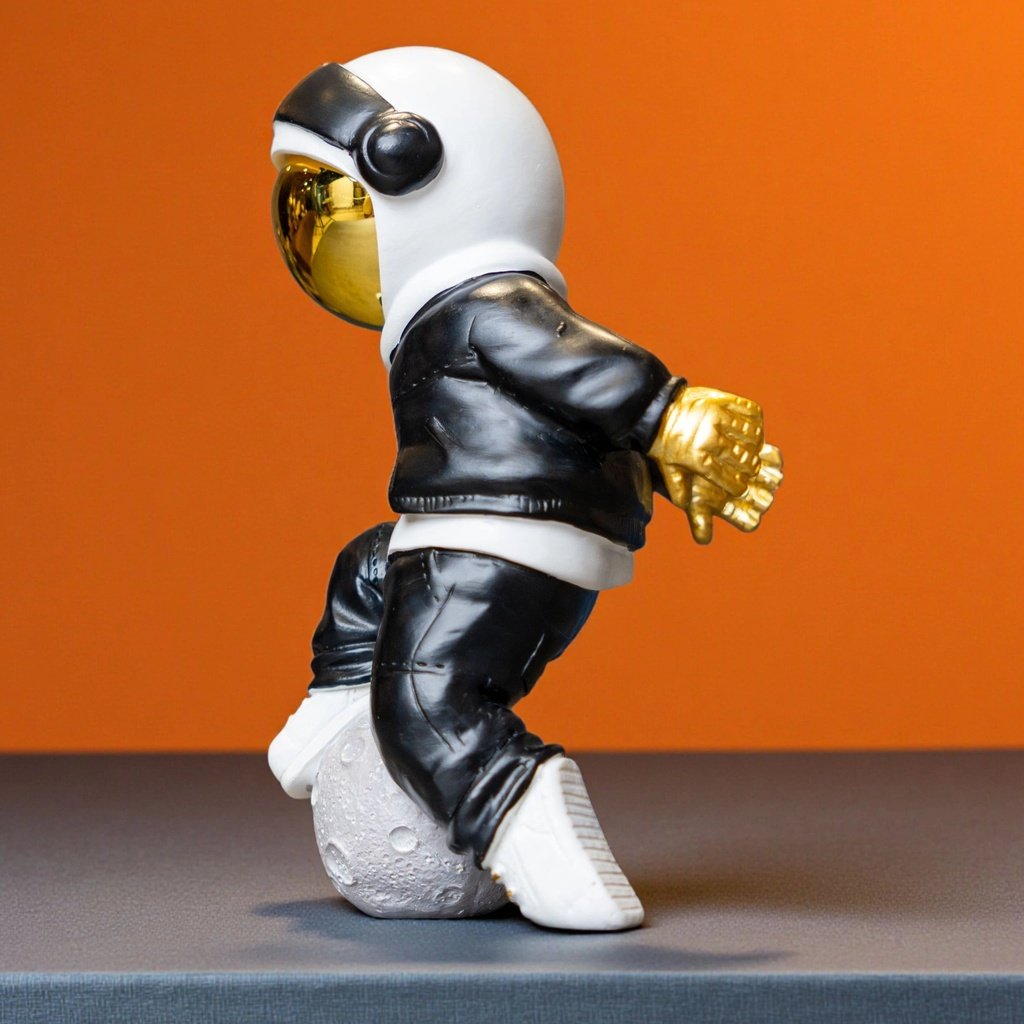 This Cosmic Voyager figurine is honestly the coolest addition to my office! I’m obsessed with the street-style vibe—the black jacket and those gold accents on the visor and sneakers are such a high-end touch. It feels really solid and well-made, definitely not your average bookshelf decor. Sitting him on the moon base makes it look like a total designer piece. It’s a fun, modern statement that always grabs everyone’s attention. I absolutely love this little guy!