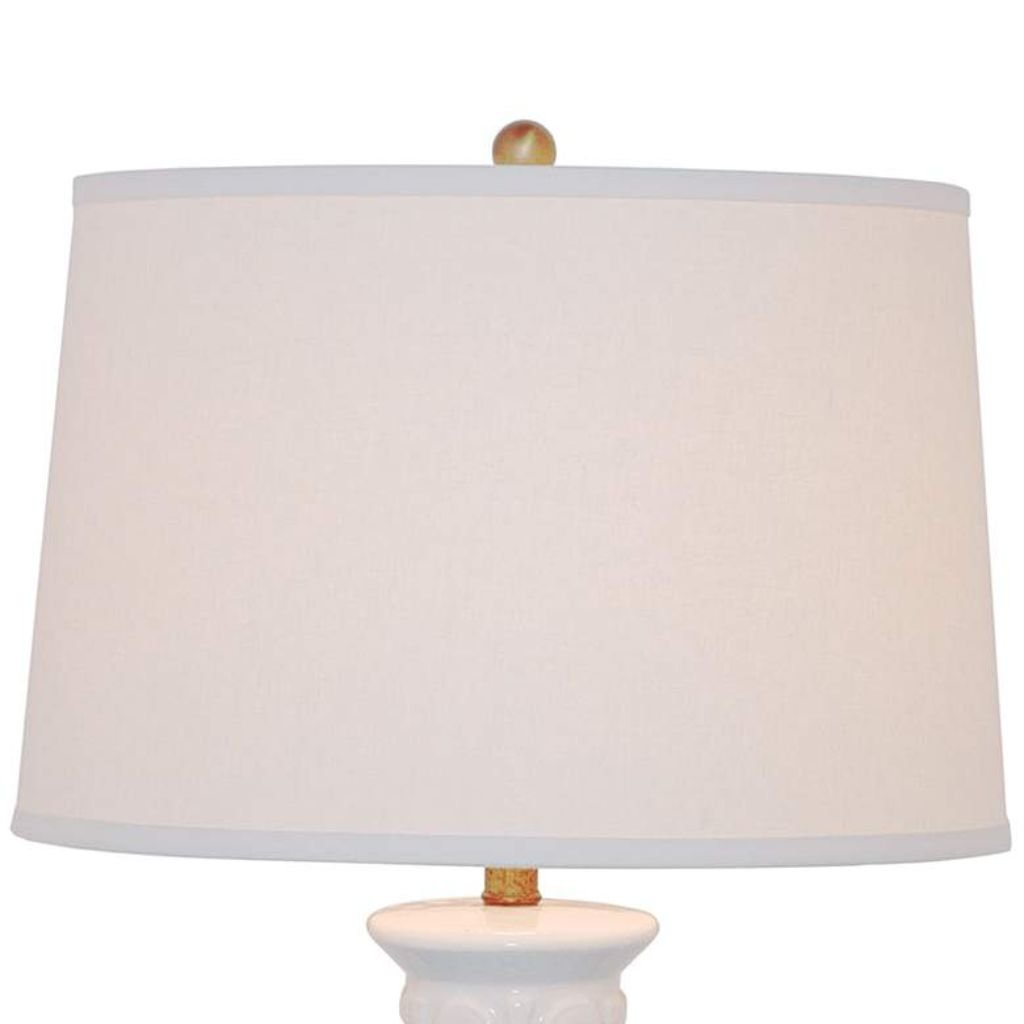The cream crackled glaze is applied by hand and develops fine surface crazing during the firing process, giving the lamp its signature aged appearance. The finish reads warm and soft in most lighting conditions, complementing neutral, earthy, and antiqued interiors naturally.