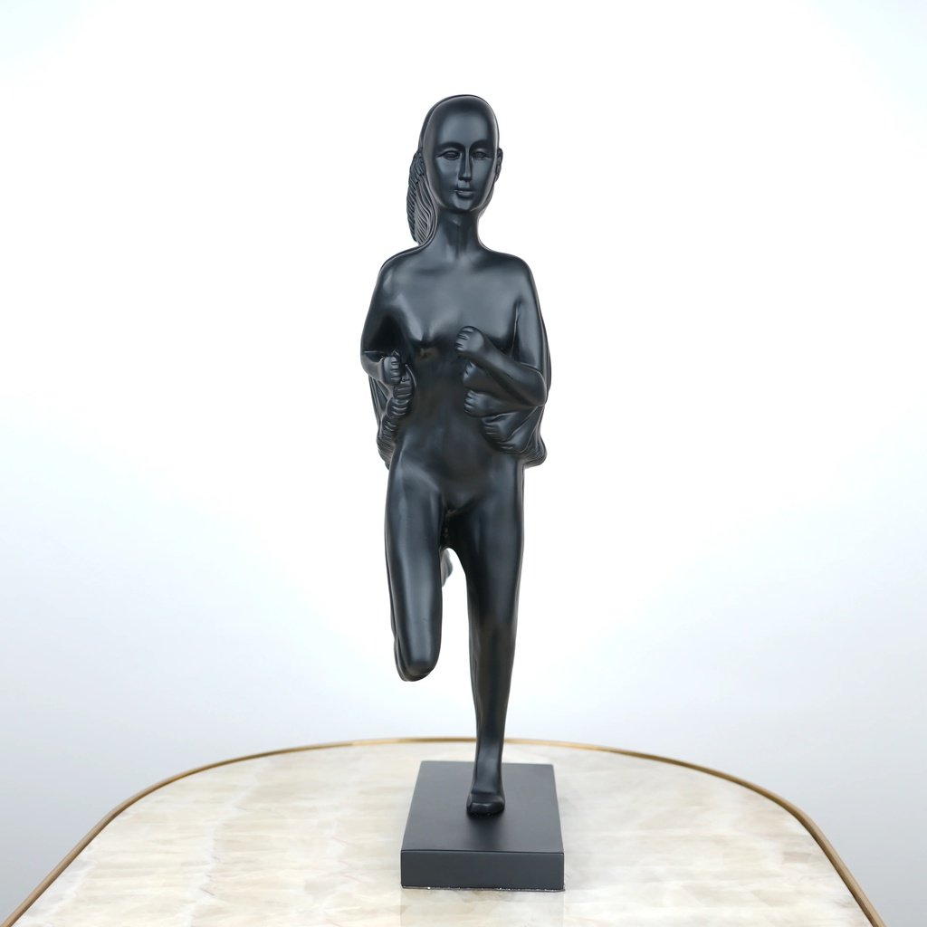 This figurine features a sleek matte black finish that screams sophistication. Its contemporary style effortlessly complements a variety of decor themes. Whether placed in a living room, office, or gallery, it adds a touch of elegance and intrigue to its surroundings.