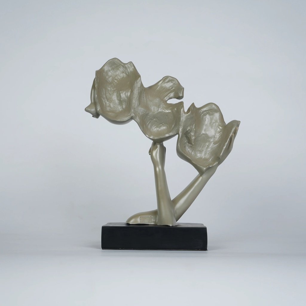 Crafted from matte gold resin with metallic gold highlights, this sculpture exudes elegance. It catches the light just right, enhancing its high-end appeal. The modern black base adds contrast, making it suitable for any room—from a chic living area to a serene bedroom nook.