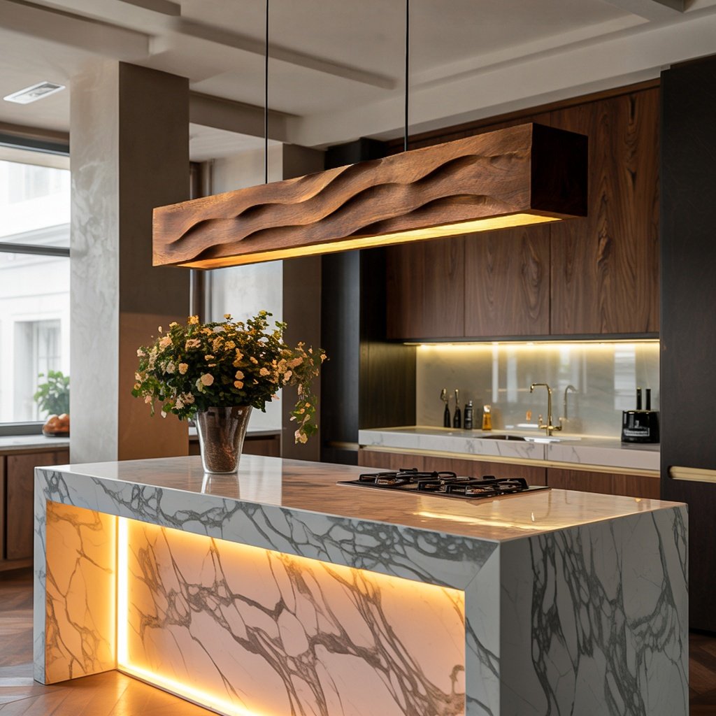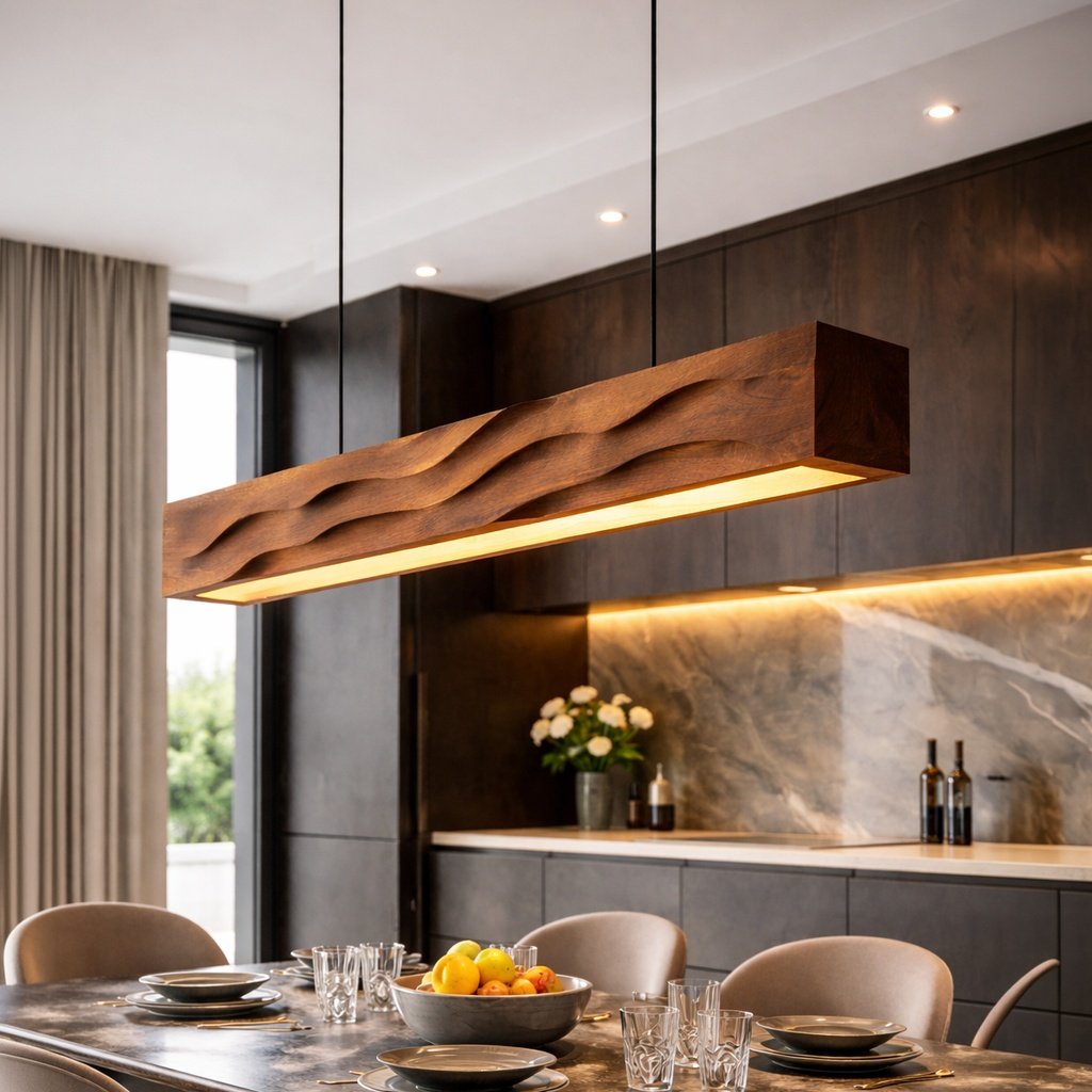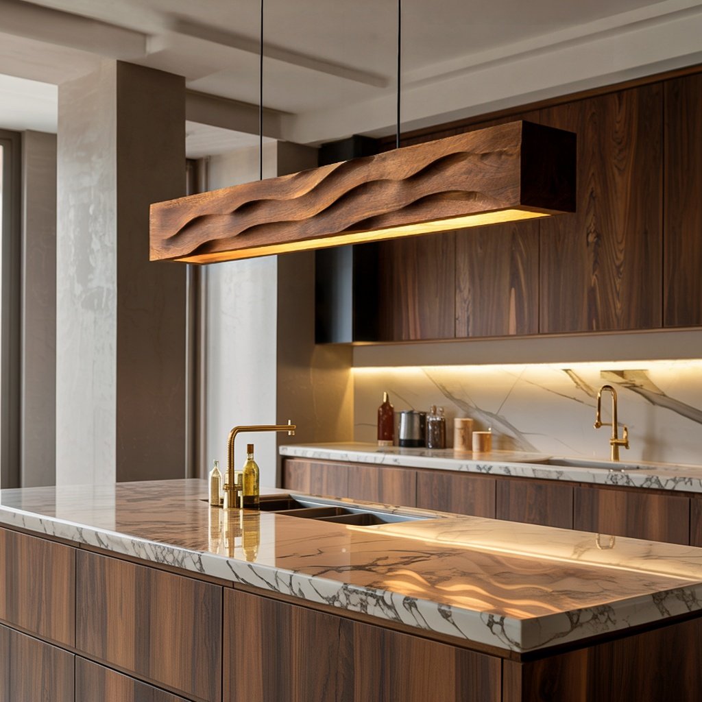 MODERN PENDANT LIGHTING WITH CARVED WAVE WALNUT