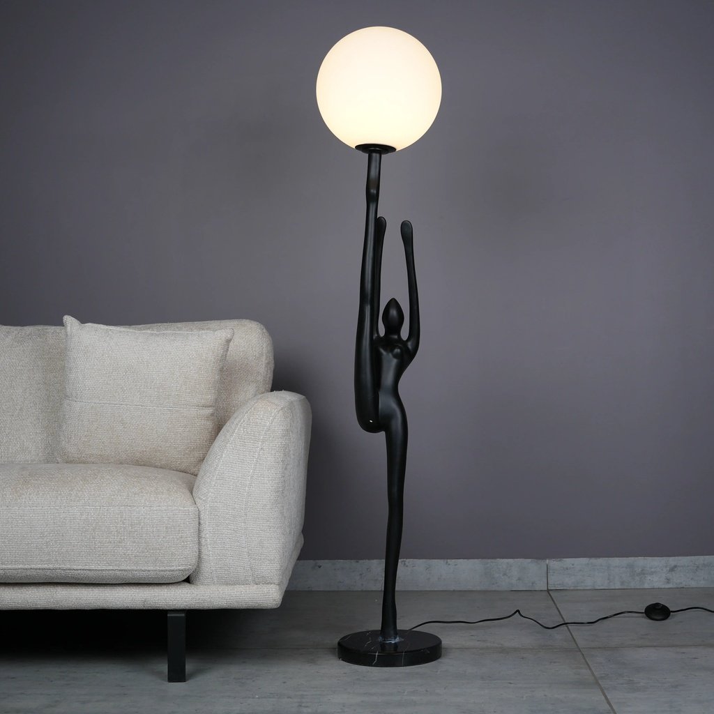 The Elegant Human Stretch Lamp features a striking silhouette of an elongated human figure in a fluid stretch pose, embodying balance and grace. This artistic design captures the strength and elegance of the human form, transforming the lamp into a captivating statement piece. Its minimalist aesthetic seamlessly integrates with modern interiors, making it a versatile addition to living spaces, curated corners, or sophisticated office environments.