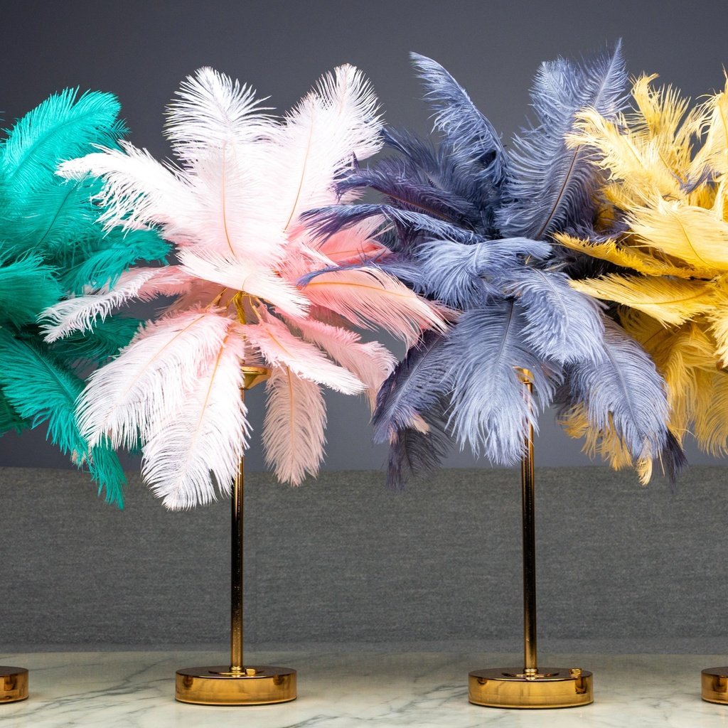 The high-gloss golden stem provides a polished, glamorous contrast to the organic softness of the feather shade above. It keeps the overall look refined rather than rustic, making it a natural fit for luxury and glam-forward spaces.