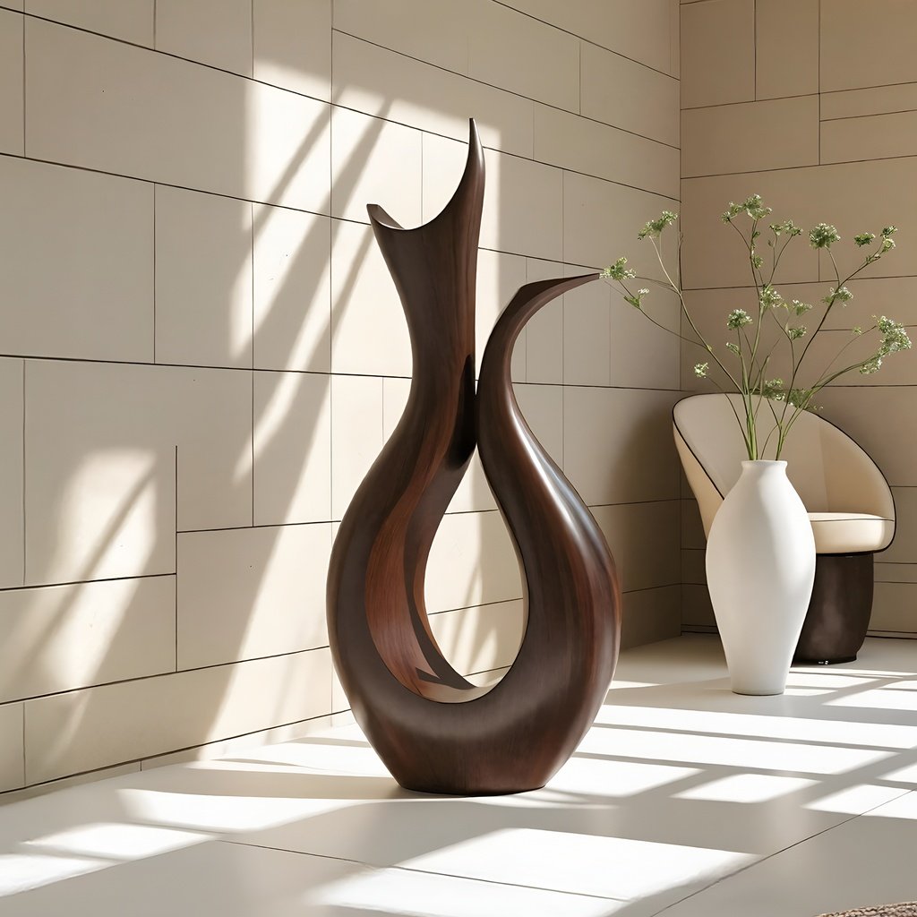 Crafted from thoughtfully sourced solid wood, each sculpture showcases beautiful organic lines and natural grain patterns. The walnut finish enhances its raw and rustic charm without taking away from the wood’s innate warmth and texture. Every piece is unique, with its own character, due to the natural variations in the wood.