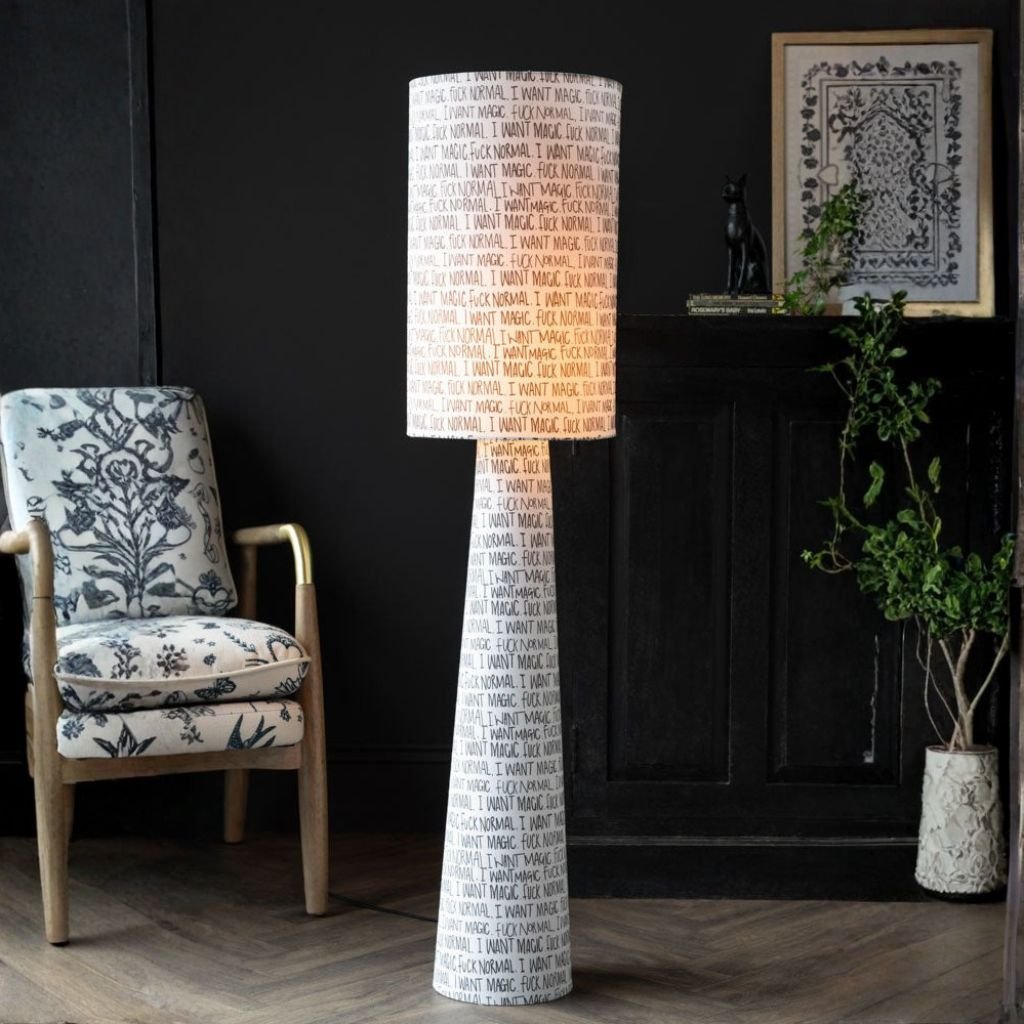 Built from solid wood, this floor lamp features a beautifully carved spindle design that adds a modern sculptural quality to any room. The deep black finish makes it versatile enough to work with almost any interior palette, from neutral minimalism to bold maximalism. This is the lamp base only — pair it with your shade of choice.