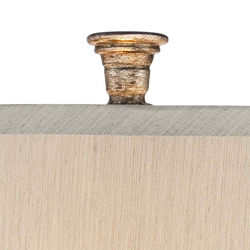 Topped with a light gray mist fabric bell shade measuring 12 inches across the top, 18 inches across the bottom, and 12 3/4 inches on the slant, this lamp diffuses light evenly for a soft, ambient glow. The shade’s neutral tone balances the intricate base design while enhancing the lamp’s traditional elegance.