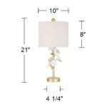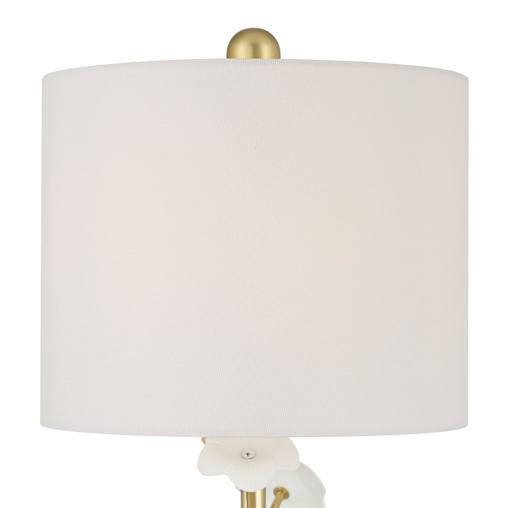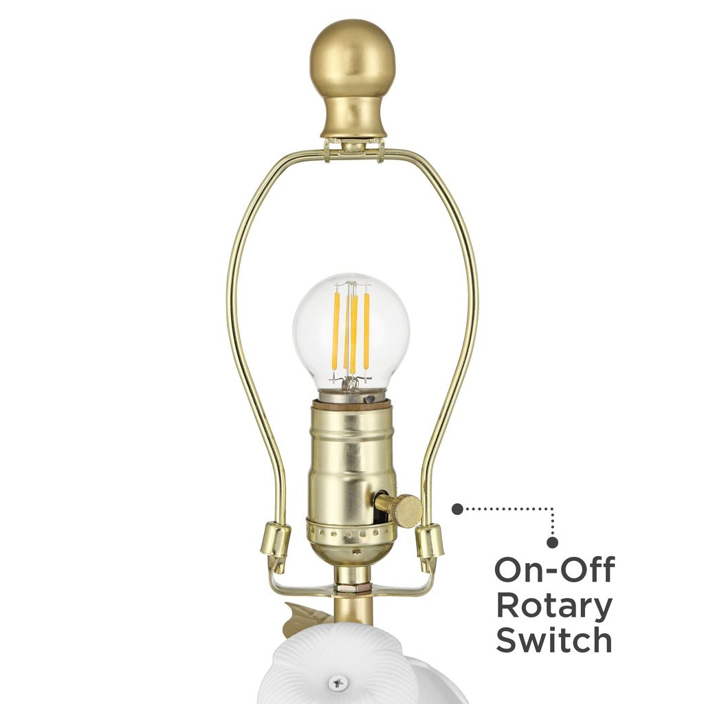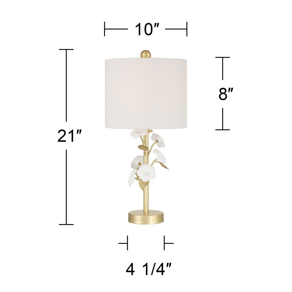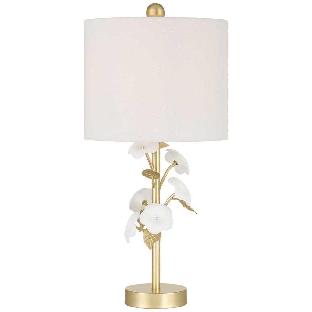 Sized to fit most tables and consoles, this gold and white flower table lamp provides comfortable ambient light without taking up too much visual space.
