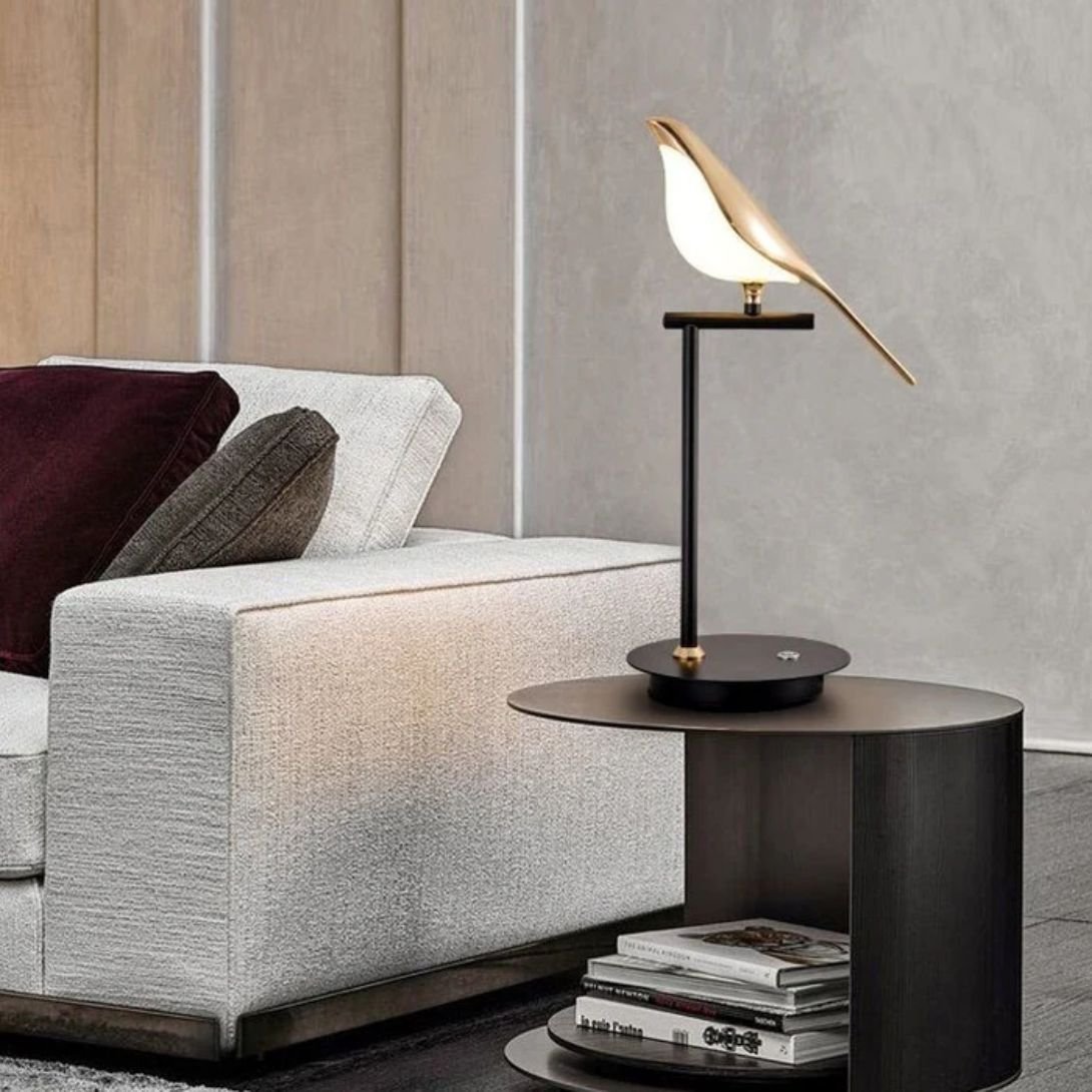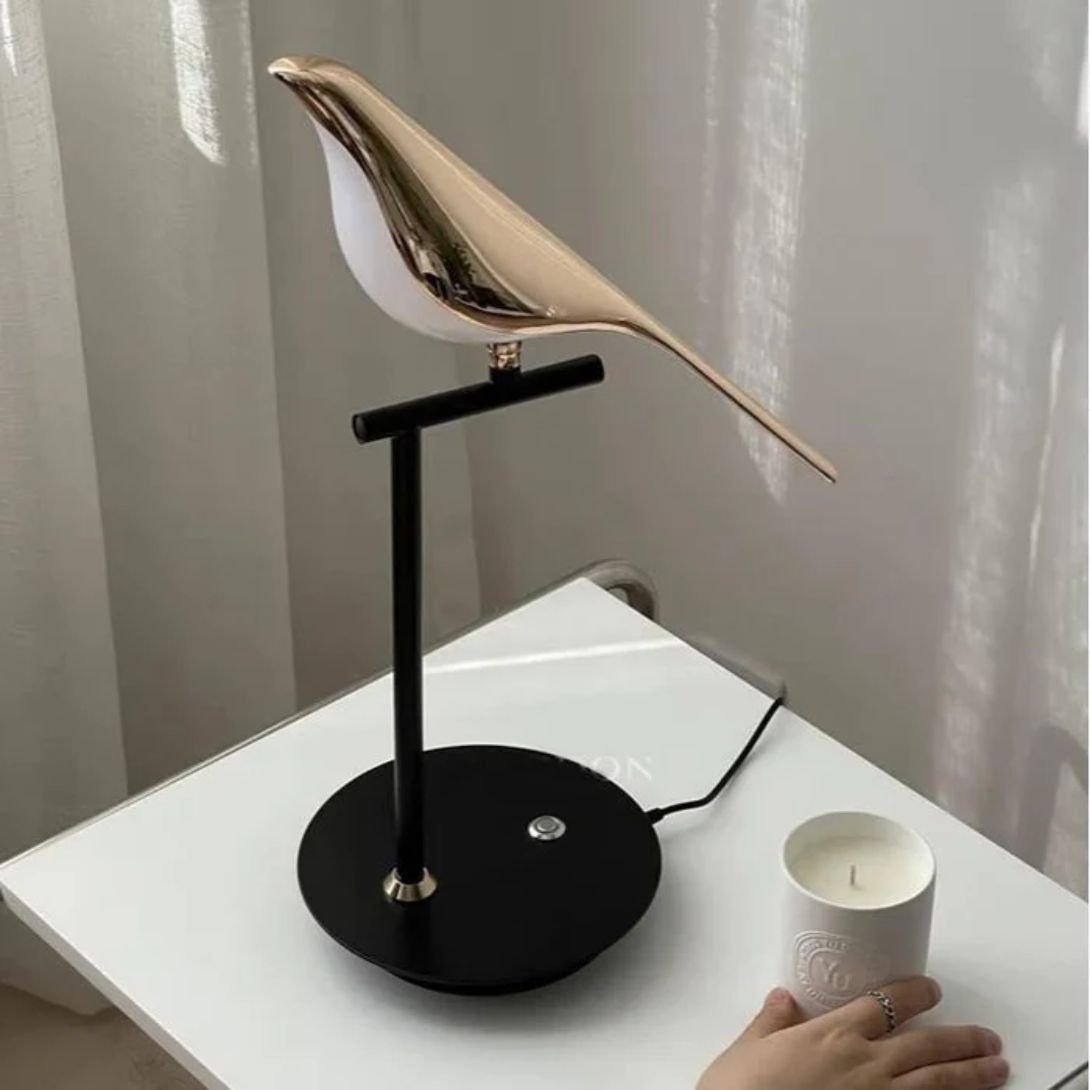 Add a touch of golden elegance to your space with this magpie-inspired lamp—where art and function illuminate in harmony.