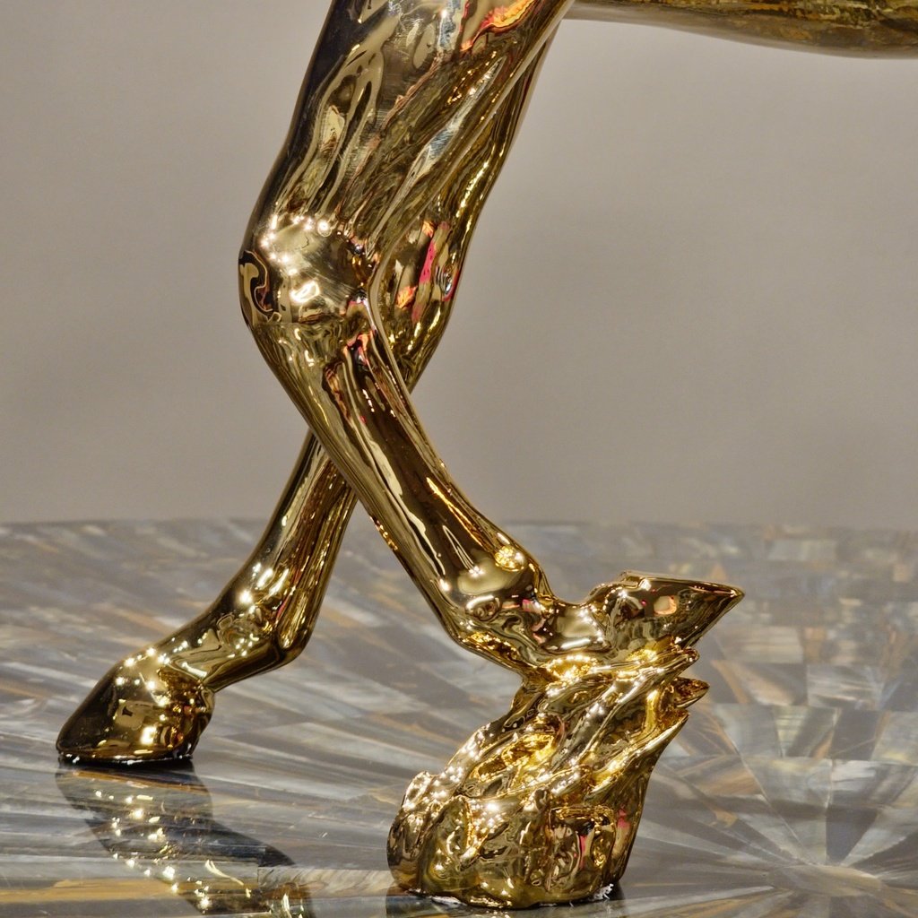The radiant golden finish adds a touch of luxury to your space. It’s not just about looking good; it’s about creating an atmosphere of opulence and sophistication. The metallic sheen reflects light beautifully, enhancing the sculpture’s presence in your home.