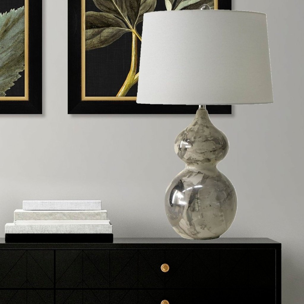 Ceramic gives this table lamp its distinctive look and feel. The gourd in gloss grey table lamp has the kind of presence that anchors a side table or console without overwhelming the space around it. It delivers quality construction at a scale that works across a range of room setups.