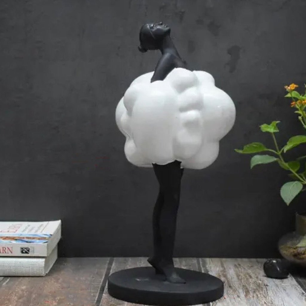 This sculpture is more than just decor—it’s an art piece that breathes life into your home. The striking black figurine, adorned with a fluffy white cloud, creates a captivating contrast that draws the eye. Whether it’s sitting on a coffee table or a bookshelf, it’s sure to be a conversation starter among guests.