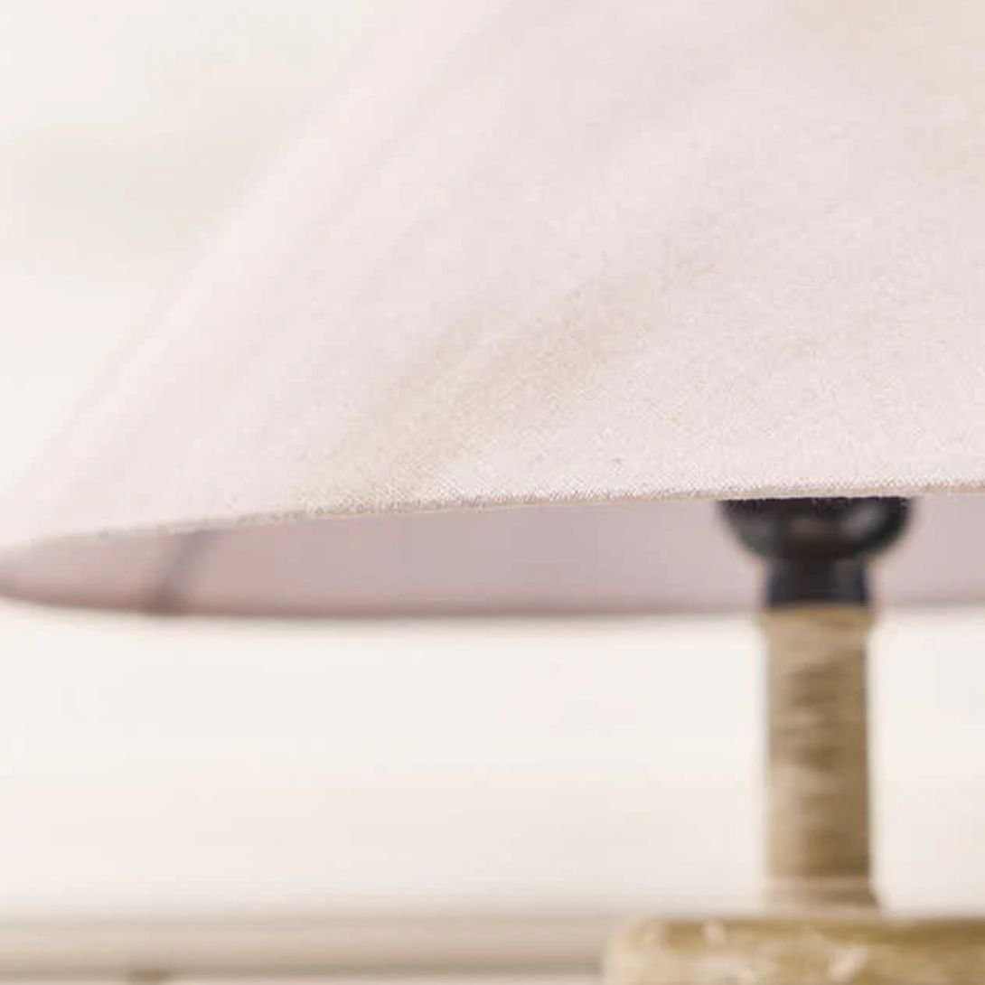 Finished with a tapered fabric shade for a soft, diffused glow