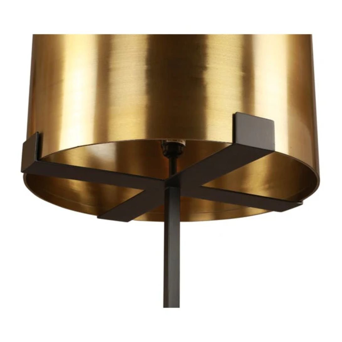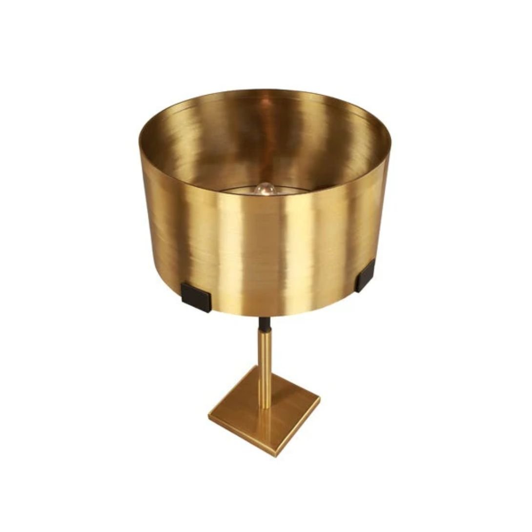 Thanks to its minimalist structure and glamorous finish, the lamp integrates seamlessly into various settings—from modern lofts to sophisticated lounges or transitional bedrooms. The brushed brass and black contrast adds warmth and texture without overwhelming the space, ensuring it complements your décor with understated elegance.