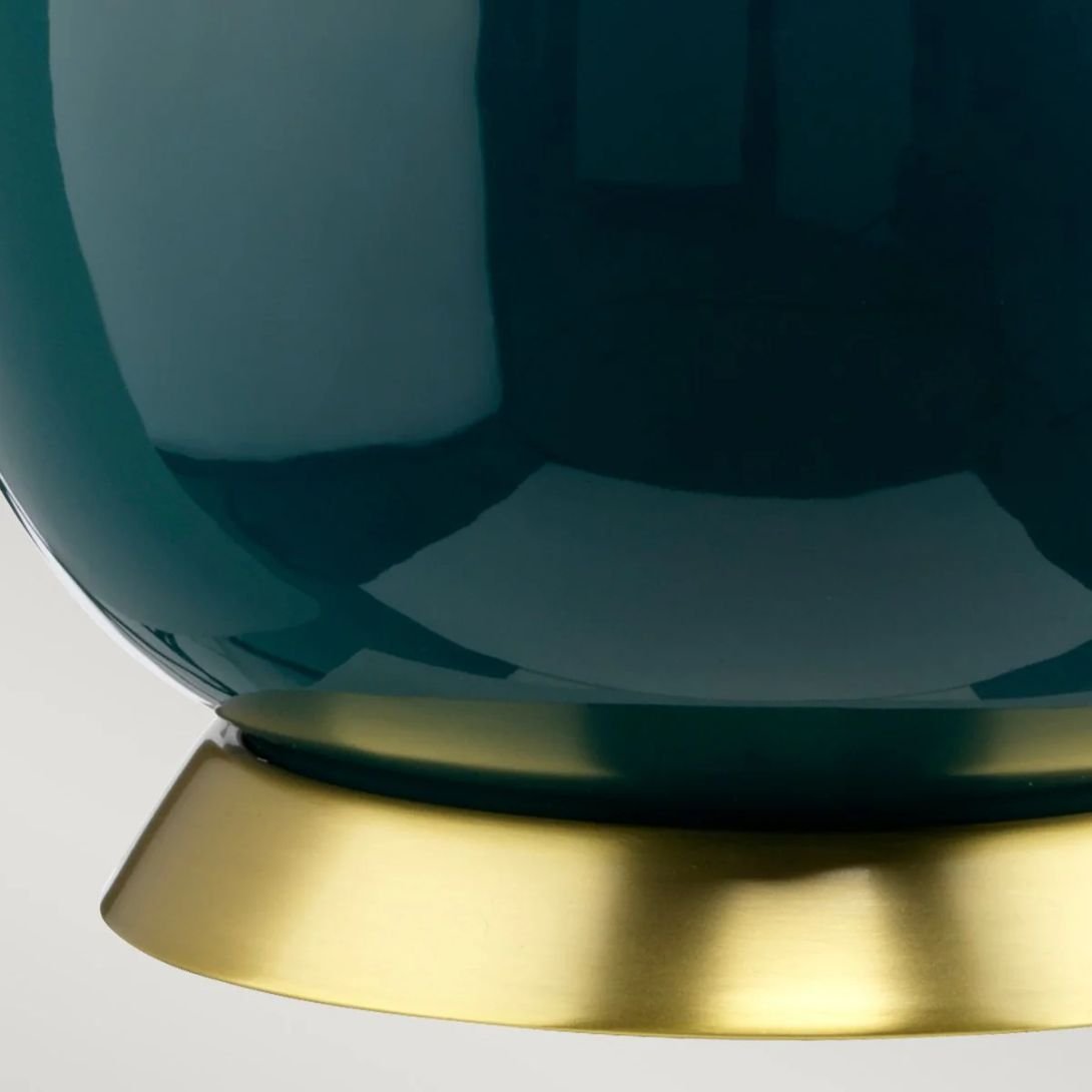 Delicate gold accents contrast beautifully with the rich, glazed finish of the base, while the shale green shade softly diffuses light to create a warm, ambient atmosphere. Whether styled on a side table, console, or bedside, the Havering lamp adds a splash of artistic flair while maintaining its refined elegance.