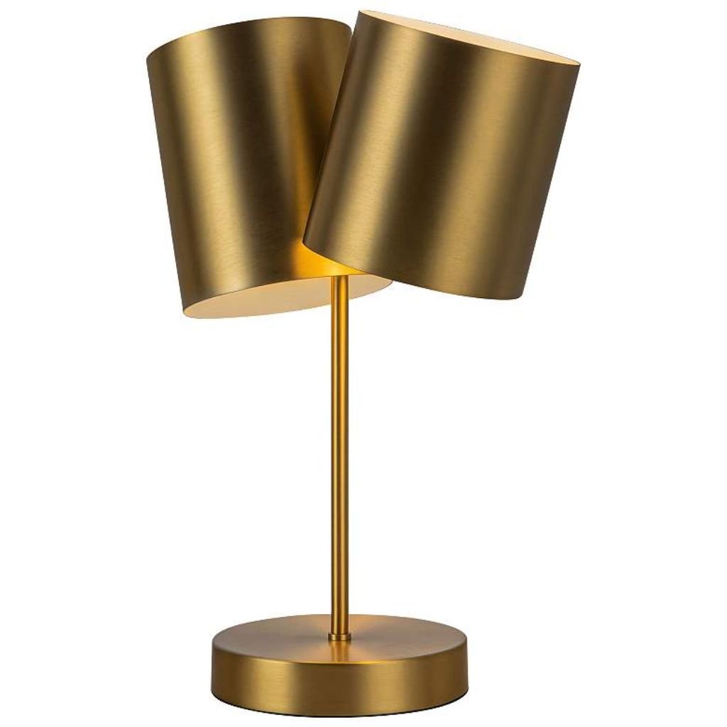 Inspired by mid-century modern design, this brushed gold lamp takes an asymmetrical, dual-shade approach that feels playful and considered in equal measure. The brushed gold metal finish keeps the look warm and contemporary without leaning into retro territory.