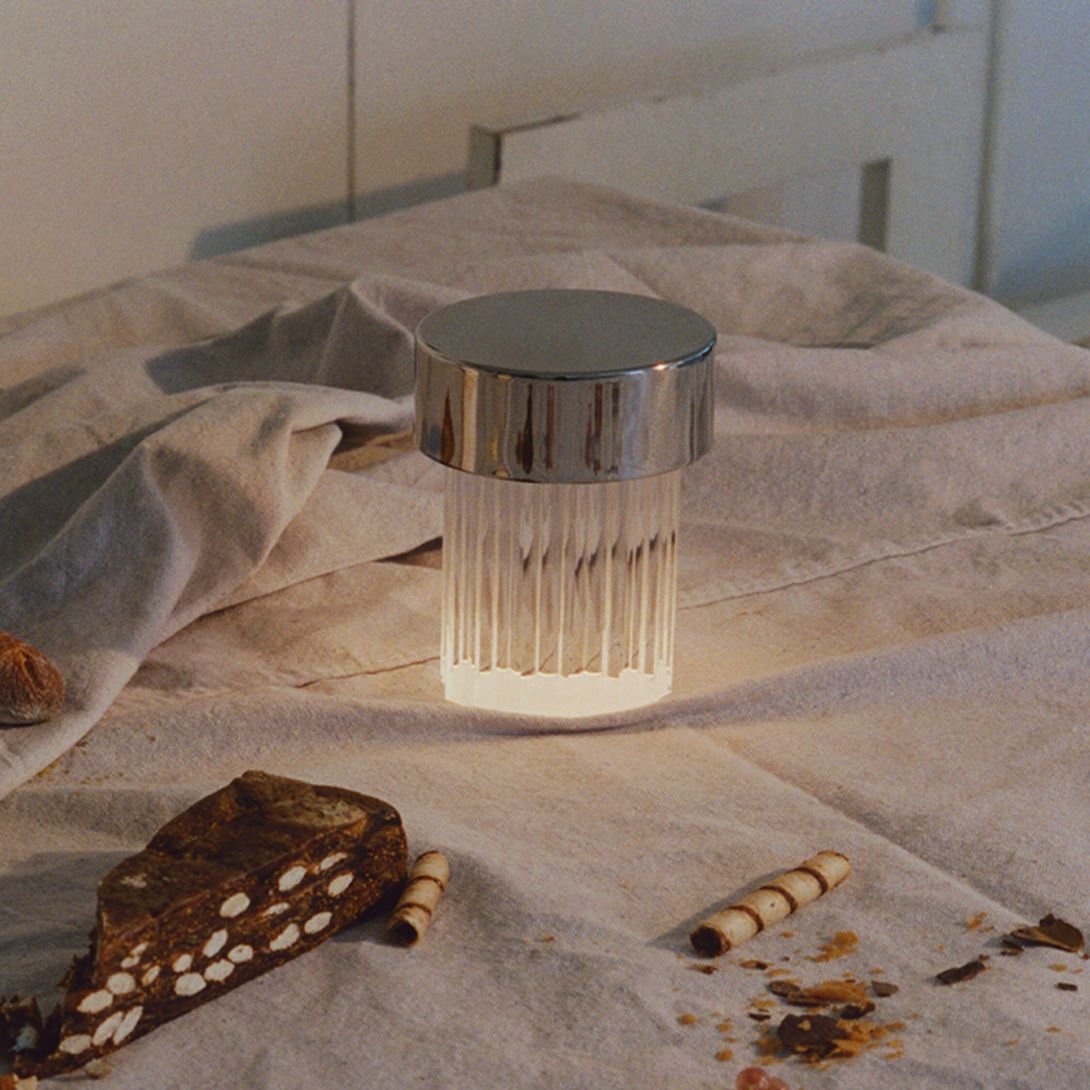 The Last Order Table Lamp, designed by Michael Anastassiades for Flos, is a sophisticated portable luminaire that beautifully blends classical architecture with contemporary design. This rechargeable table lamp features a transparent solid crystal base, its cylindrical form inspired by the ancient architectural typology of the column—elegant, timeless, and iconic.