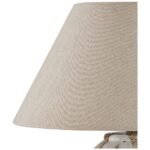The fabric shade softens and diffuses light to create a welcoming atmosphere in any room. It’s designed to complement the lamp base without competing with it. The light output is warm and suitable for both ambient and accent use.