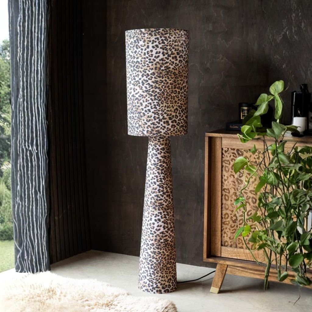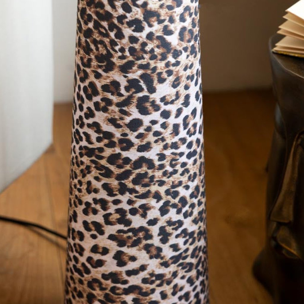 Leopard print gives this floor lamp its distinctive look and feel, wrapping the tall cylindrical shade in a bold, fashion-forward pattern that makes no apologies for standing out. The design captures the elegance and energy of the wild in a way that translates beautifully to interior design. It stands at H130cm, making it a commanding presence in any room.