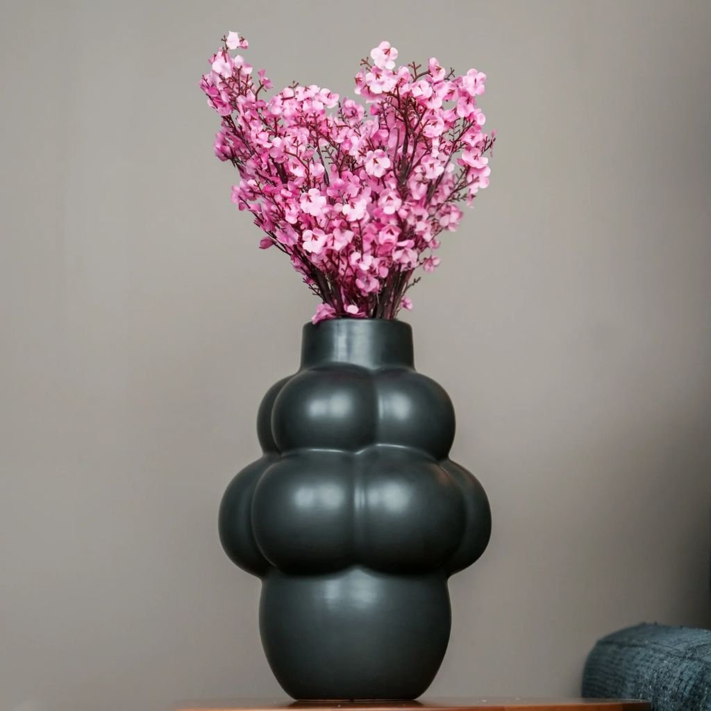 The signature feature is the stacked orb neck — each bubble flows into the next with seamless precision. This detailing gives the vase a sculptural identity that reads as both playful and sophisticated, depending on the surrounding décor.
