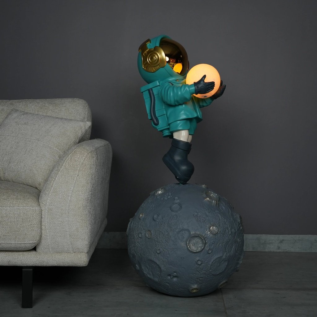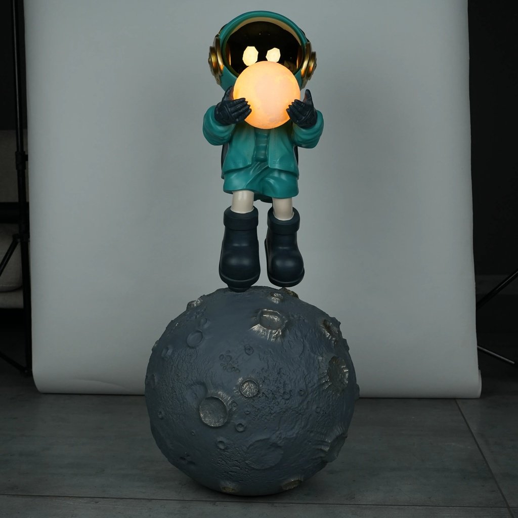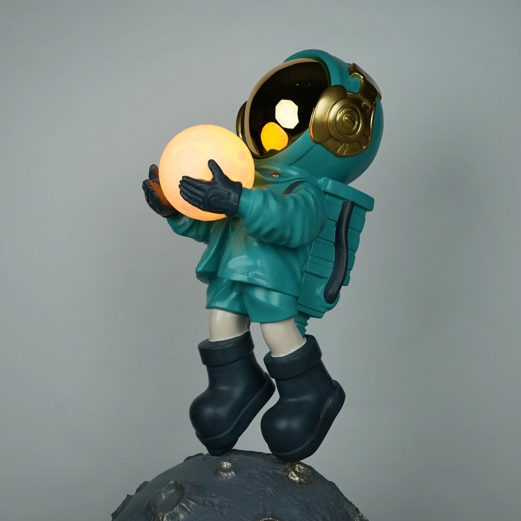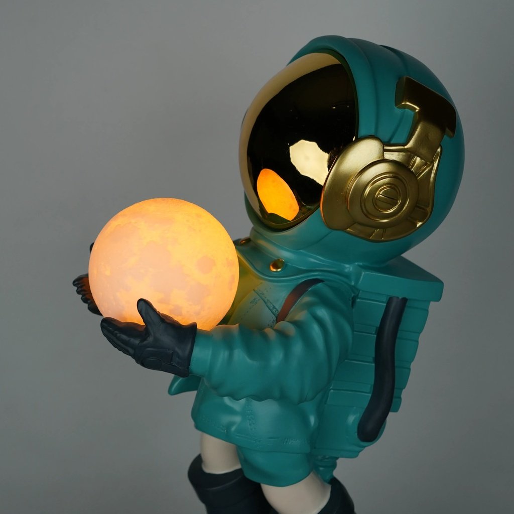 Crafted from high-quality resin, the Lunar Guardian Lamp is a testament to fine artistry and durability. The material choice allows for intricate detailing, from the astronaut’s suit to the realistic craters on the moon base. This attention to detail ensures that the lamp not only serves as a functional piece but also as a lasting work of art, adding depth and realism to its cosmic theme.
