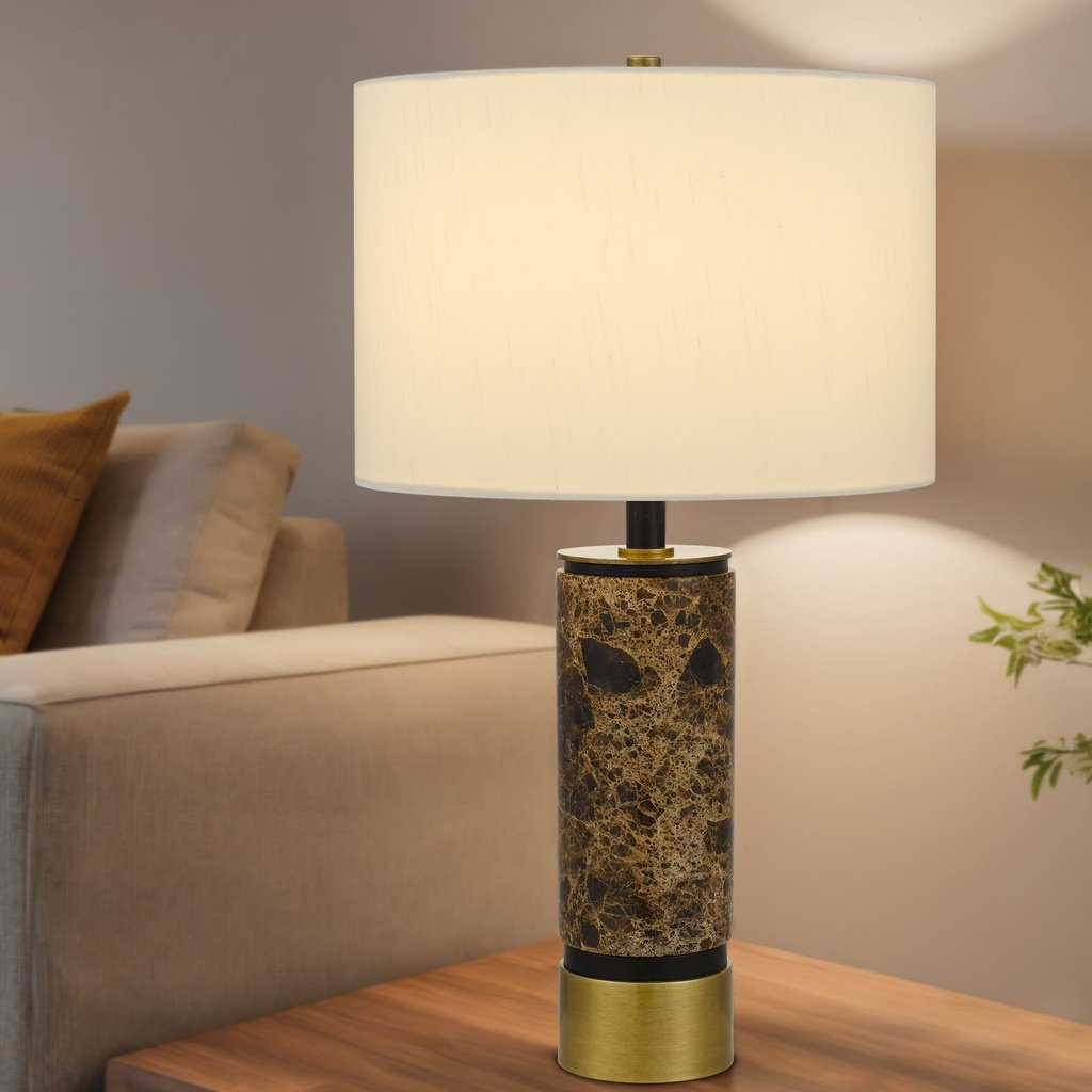 In a living room or bedroom, the right stone table lamp brings natural material character that manufactured finishes cannot replicate. This one is built around a genuine marble base — veined, cool to the touch, and unique from piece to piece — sitting at a solid 18.4 pounds that anchors it confidently on any flat surface. The combination of real stone weight and refined proportions makes it feel more like an object of craft than a standard lighting fixture.