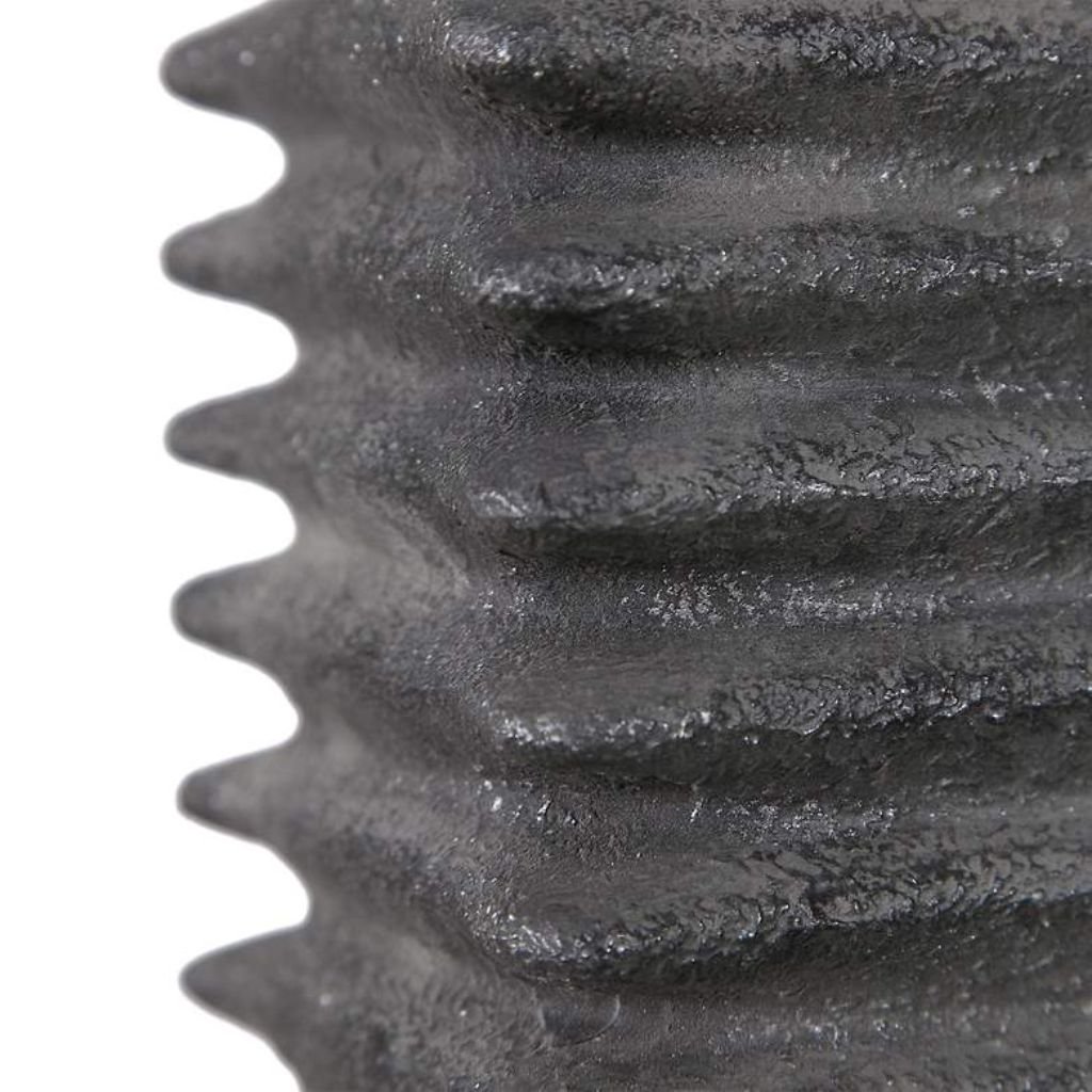 The base of this table lamp is crafted from ceramic and finished in a metallic charcoal glaze, creating a sleek, modern aesthetic. Deep ribbed detailing adds dimension and tactile appeal, making the base a striking visual focal point. Matching metal accents enhance the contemporary feel, giving the lamp an industrial edge that works beautifully in lofts, offices, or living rooms.