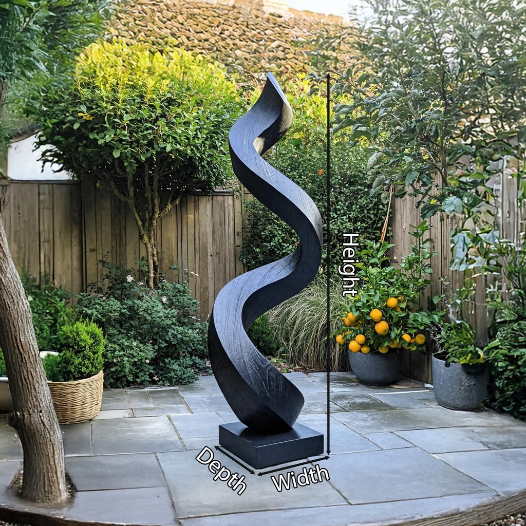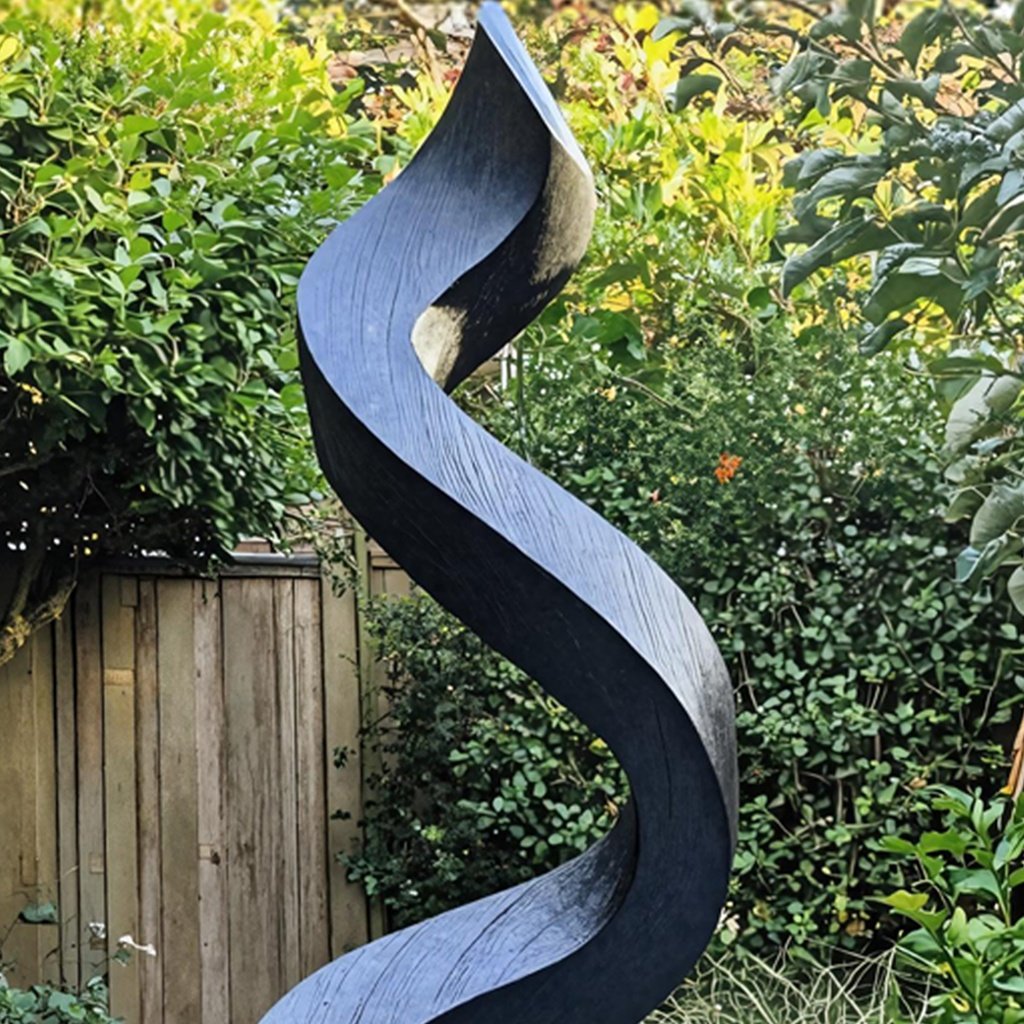 This abstract sculpture boasts a sleek black finish that highlights its intricate design. Its flowing forms and bold lines create a sense of movement, drawing the eye and sparking conversation. It’s an ideal piece for a living room or entryway where it can be admired by guests and family alike.