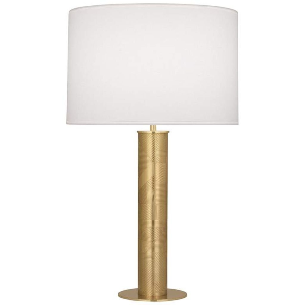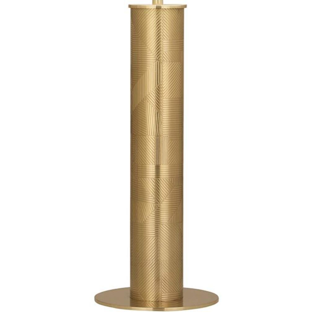 This brass column lamp is built on a straightforward premise — clean steel construction, a solid round base, and a modern brass finish that reads warm and contemporary without leaning traditional. The silhouette is deliberately simple, letting the brass tone and proportions do the work. An Ascot white fabric drum shade completes the two-tone look with understated elegance.