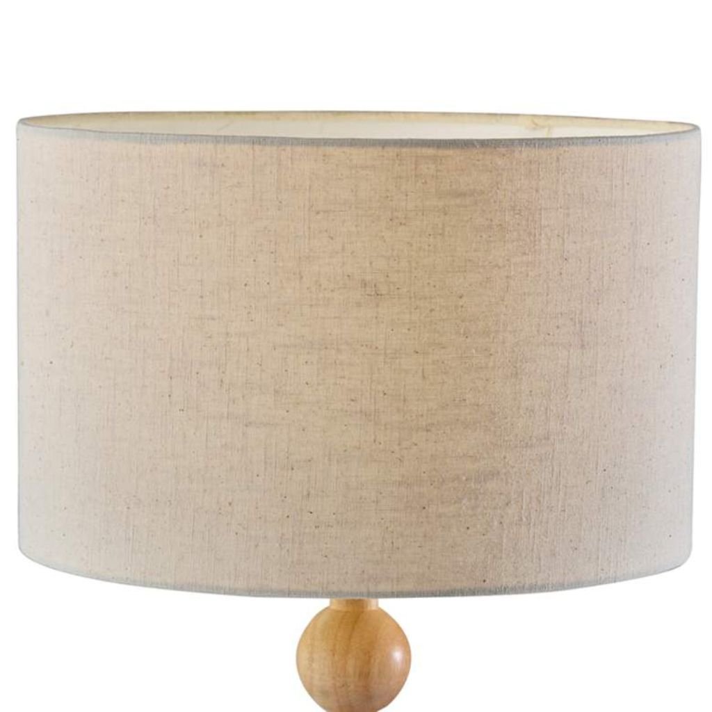 Stacked wood balls rising on a natural finish pole frame — a lamp base that draws from the visual language of turned craft and farmhouse making without leaning into either aesthetic so heavily that it loses versatility. The Orchard natural wood table lamp by Adesso builds its charm around a stacked ball stem design in genuine wood construction — each sphere sitting cleanly on the next in a rhythm that reads as both decorative and architecturally considered. The natural finish preserves the wood’s inherent grain and tonal variation, ensuring no two lamps carry an identical surface character. At 28.25 inches tall and under 3 pounds, this lamp brings coastal farmhouse warmth to dining spaces, side tables, and console surfaces without the physical burden of heavier ceramic or stone alternatives. A cream linen fabric drum shade sits above the stacked stem in relaxed, natural proportion, its warm neutral tone continuing the lamp’s organic material story from base to crown.